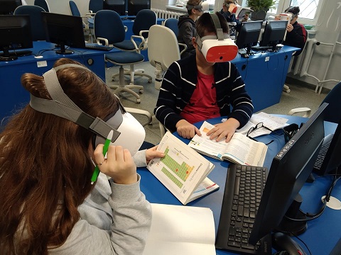 Chemia. Uczniowie kl. VII dzięki goglom VR mogą poznać budowę atomów. Rozpoznają też pierwiastki na podstawie konfiguracji elektronowej. To była fajna lekcja.