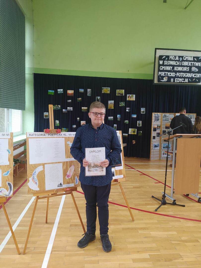 18 kwietnia w Szkole Podstawowej im. J. H. Dąbrowskiego w Krobanowie odbyło się podsumowanie Gminnego Konkursu „ Moja Gmina w słowach i obiektywie”. Nasi uczniowie odnieśli w nim sukcesy. W kategorii poetyckiej uczeń klasy VII – Michał Zakłos zajął II miejsce. W kategorii fotograficznej, uczennica kl. V Klaudia Ciołek wywalczyła III m-sce, a Lena Klucha z kl. VI – wyróżnienie.