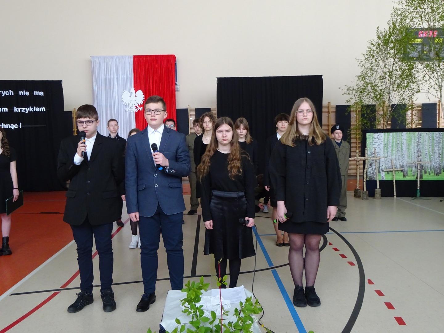 W Obchodach wzięli udział przedstawiciele władz powiatowych, miejskich i gminnych, służb mundurowych, uczniowie oraz rodziny pomordowanych. Po odczytaniu apelu poległych pod obeliskiem upamiętniającym zamordowanych na Wschodzie złożono wiązanki i znicze. Na zakończenie uroczystości zaprezentowano wzruszający program artystyczny przygotowany przez uczniów naszej szkoły pod opieką Pań Sylwii Tondel i Eweliny Klimczak oraz Pana Tadeusza Goleczko i Pani Doroty Szewczyk.