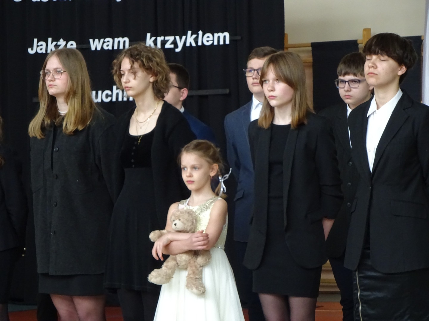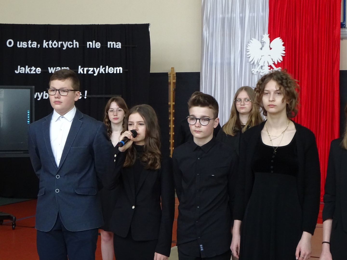 Katyń to historia wciąż żywa. Historia, która domaga się od nas klarownej i autentycznej prawdy. To jedna z tych zbrodni, które nie ulegają przedawnieniu i doświadczenie, którego nie wolno zapomnieć. Dziś w naszej szkole odbyły się uroczystości Gminnego Dnia Katyńskiego. Były one hołdem dla Ofiar Zbrodni Katyńskiej oraz dla uczczenia pamięci pomordowanych mieszkańców gminy Zduńska Wola: Władysława Konata, Antoniego Sokołowskiego, Szymona Jagiełły i Antoniego Grębowicza.