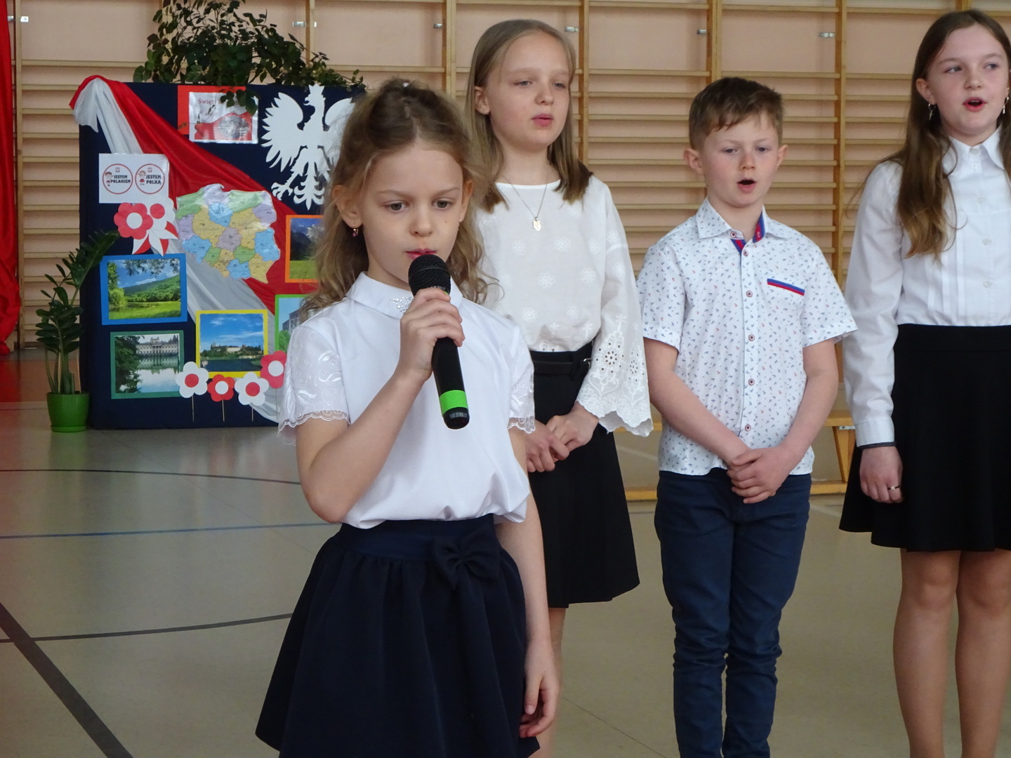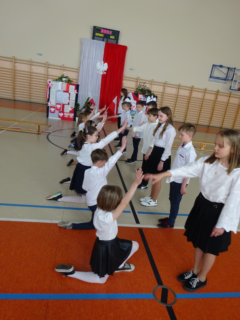 Uroczystym apelem przedstawionym przez uczniów klasy I i III pod opieką pań Lilli Dawid i Małgorzaty Sumińskiej społeczność naszej szkoły uczciła Święto Konstytucji 3 Maja. Uczniowie choć mali, to jednak z powagą i w piękny sposób przedstawili to historyczne wydarzenie. Apel był ciekawą lekcją patriotyzmu.