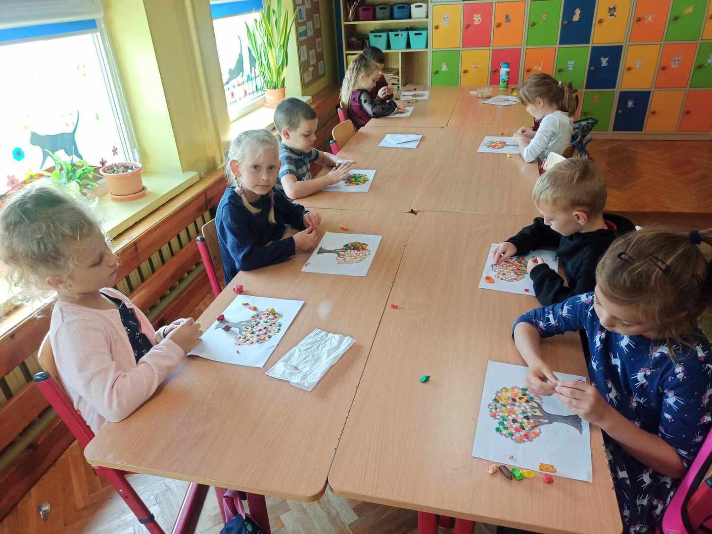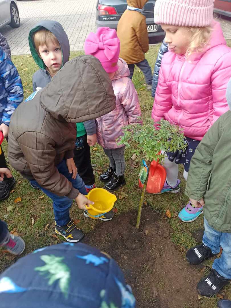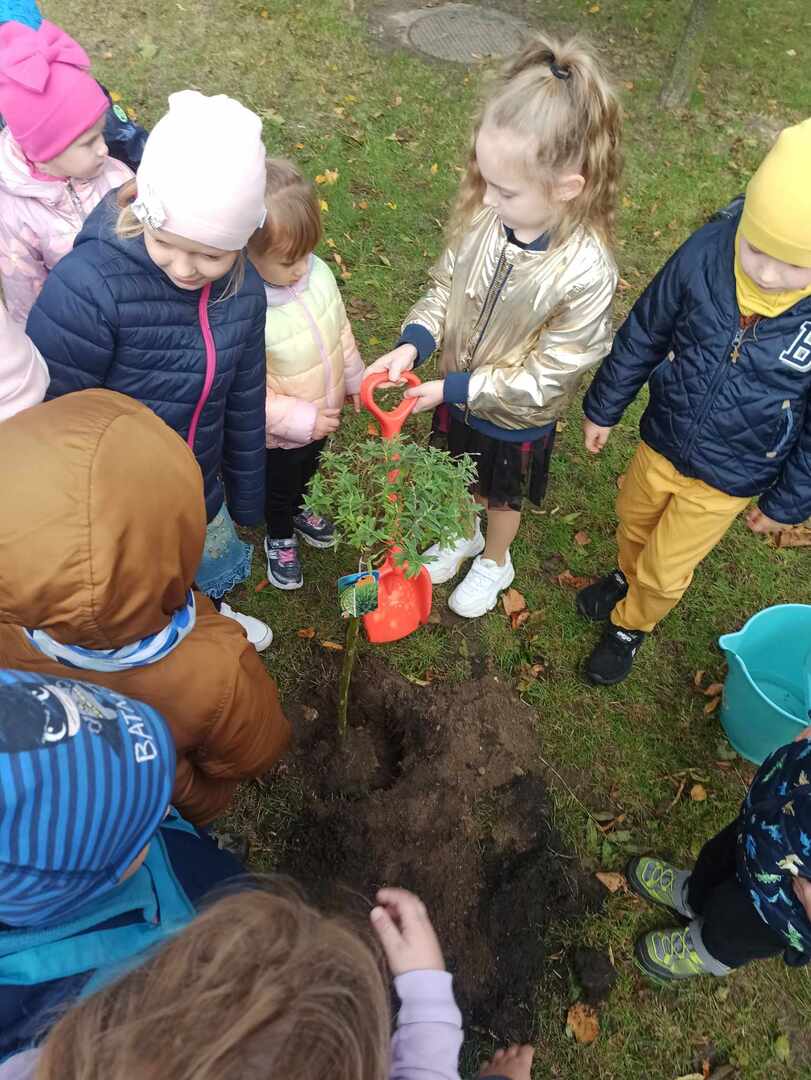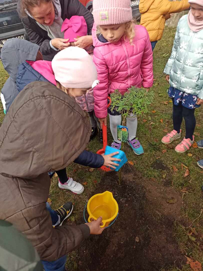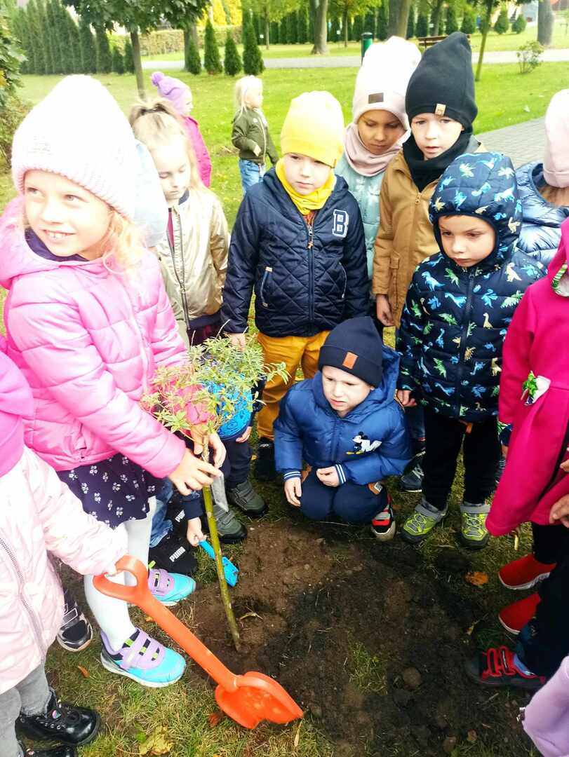 W dniu 10 października dzieci z oddziału "0" obchodziły Dzień Drzewa. Tego dnia odbyły się zajęcia związane z tematyką drzew. Dzieci poznały budowę drzewa i jego znaczenie dla człowieka, zwierząt i przyrody. W czasie zabaw badawczych oglądały i dotykały różnych drzew, ich liści i owoców. Dowiedziały się również o etapach wzrastania drzewa oraz jego zmienności wyglądu podczas pór roku. Podczas quizu wykazały się wiedzą na temat różnych rodzajów drzew, rozpoznając je po liściach i owocach. Wykonały wspólną pracę plastyczną "Jesienne drzewo", wykorzystując do niej zebrane liście podczas spaceru. Obchody Dnia Drzewa były wspaniałą okazją do posadzenia drzewka w naszym ogrodzie. Wszyscy obiecali, że będą dbać, podlewać i codziennie obserwować wzrost nowo posadzonego drzewka.
