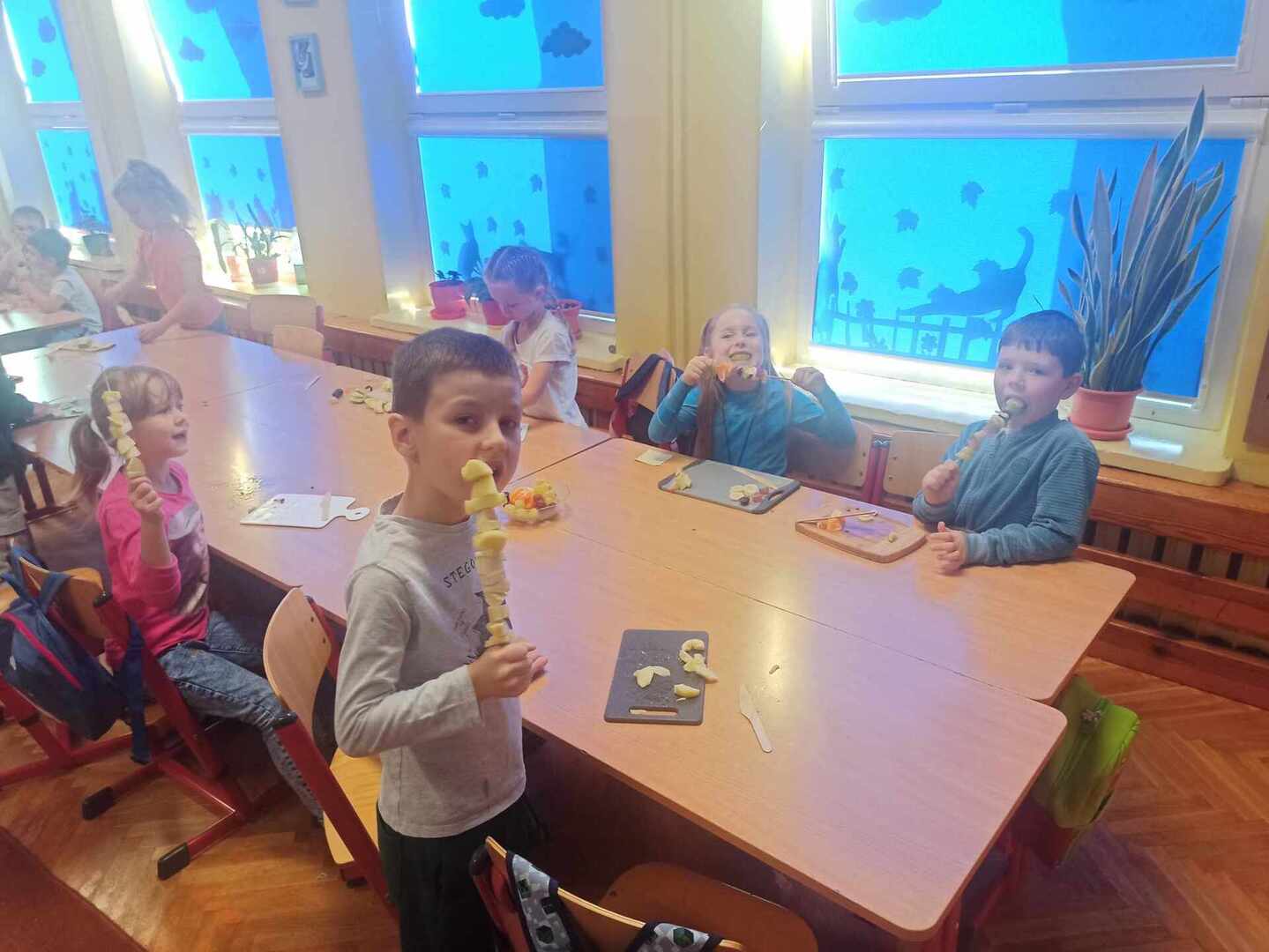 Ostatni tydzień upłynął w naszej szkole pod hasłem zdrowia. Najpierw dzieci z oddziału „0” przygotowały zdrowe i pyszne szaszłyki owocowe. Dowiedziały się przy tym, jak ważne dla naszego organizmu i zdrowia jest spożywanie owoców. Z kolei starsi uczniowie uczestniczyli w festiwalu jabłka. Trójka naszych uczniów udała się do Stemplewa, aby tam bawić się w kuchni i przygotowywać dania z jabłkiem w roli głównej. Na koniec klasa III zorganizowała ziołową apteczkę. Uczniowie poznawali właściwości lecznicze oraz walory smakowe niektórych roślin wykorzystywanych jako przyprawy w kuchni. Ponadto mogli oni skosztować smaku naparu z mięty i pokrzywy. Dotknąć soku aloesu, który między innymi świetnie goi oparzenia.
