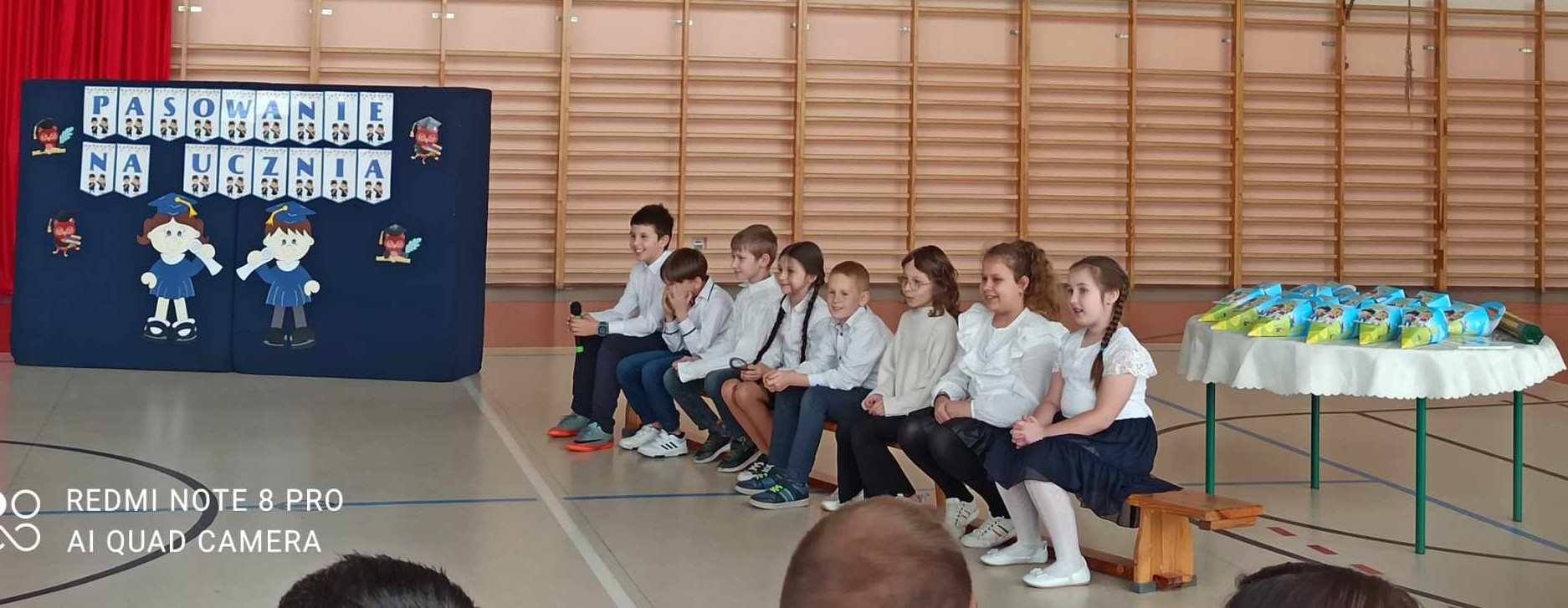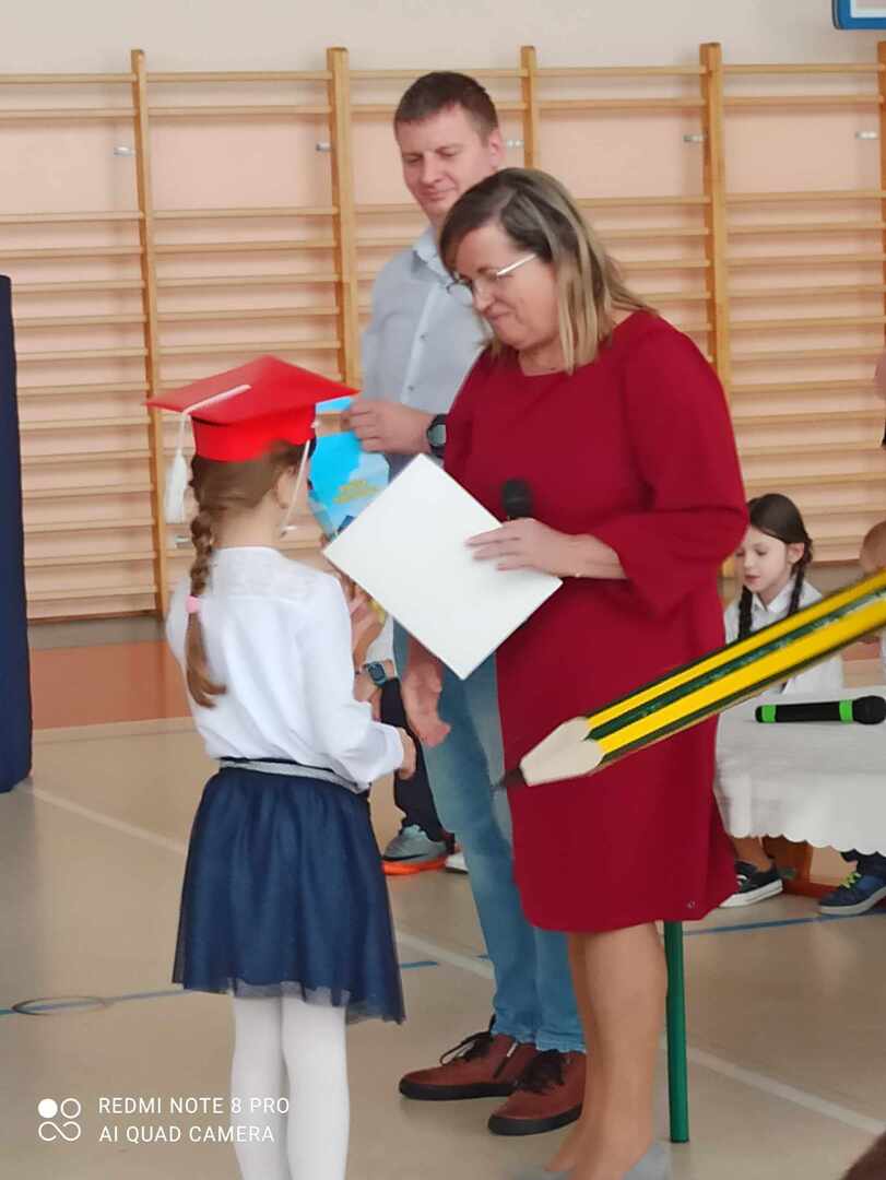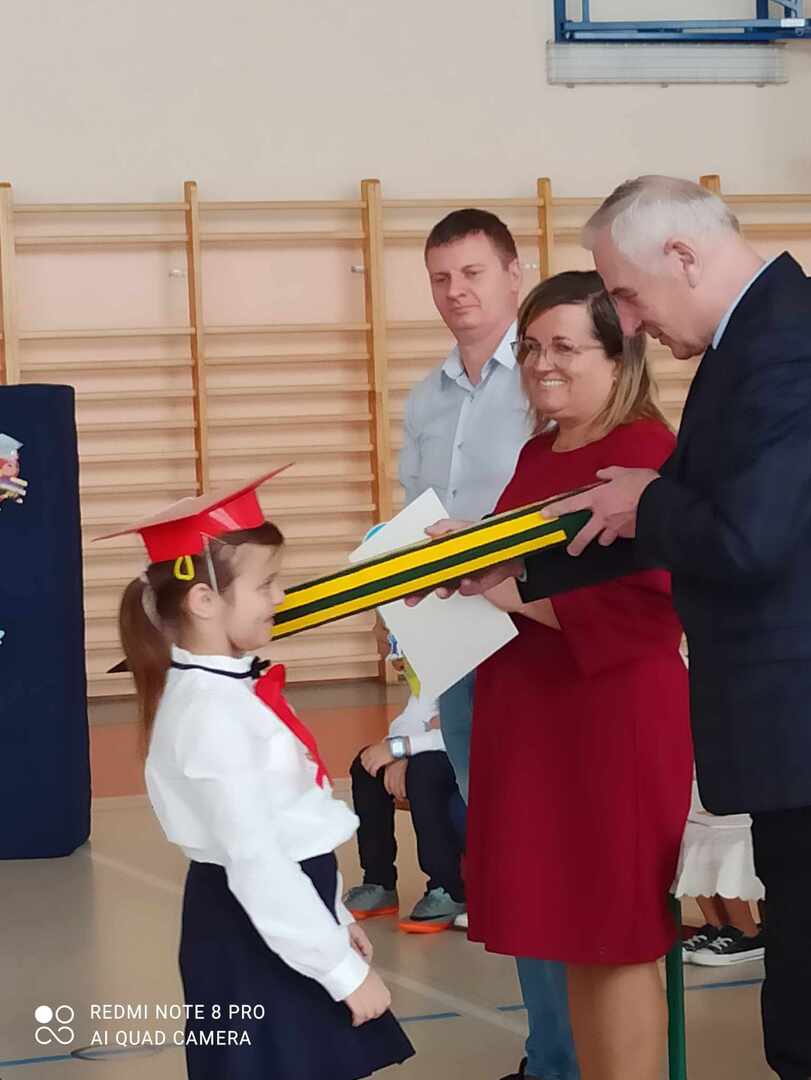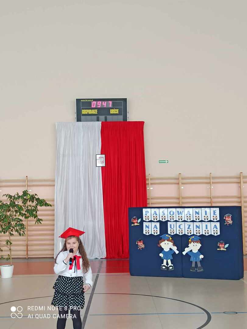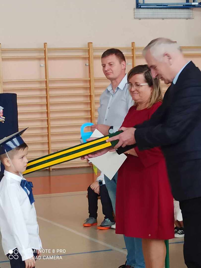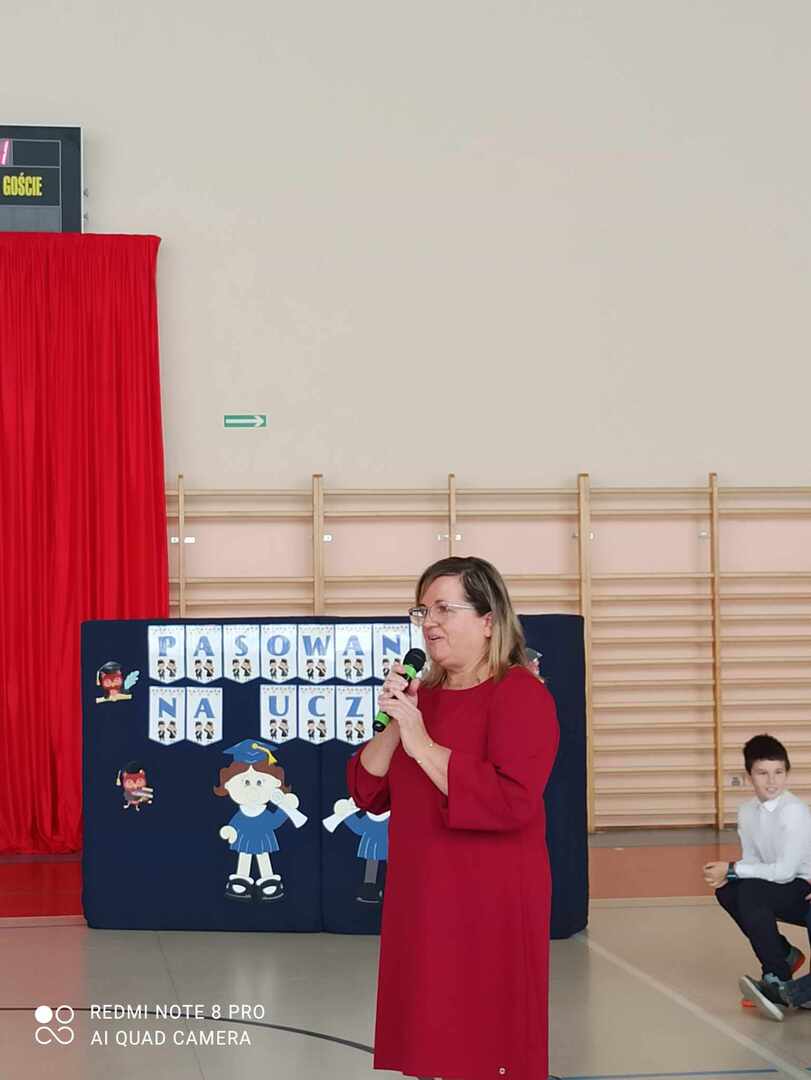8 listopada 2023 r. odbyła się w naszej szkole uroczystość pasowania na ucznia. Jest to szczególny dzień, który na długo pozostanie w pamięci każdego ucznia klasy pierwszej. W tym dniu dzieci oficjalnie przyjęte zostały do grona uczniów szkoły. Podczas uroczystości pierwszoklasiści pokazali, że potrafią pięknie śpiewać, tańczyć i recytować wiersze. Najważniejszą częścią uroczystości, na którą wszyscy czekali było ślubowanie oraz pasowanie na ucznia, którego dokonał dyrektor szkoły Pan Marek Guć w obecności wychowawcy – Pani Małgorzaty Sumińskiej. Pierwszaki głośno i z przekonaniem przyrzekały być dobrymi i pilnymi uczniami oraz rzetelnie wypełniać swoje obowiązki. Wszystkim pierwszoklasistom w tak ważnym dla nich dniu życzymy wielu sukcesów na nowej drodze obowiązków szkolnych. Dziękujemy uczniom klasy III i VII za pomoc i uświetnienie tej uroczystości.