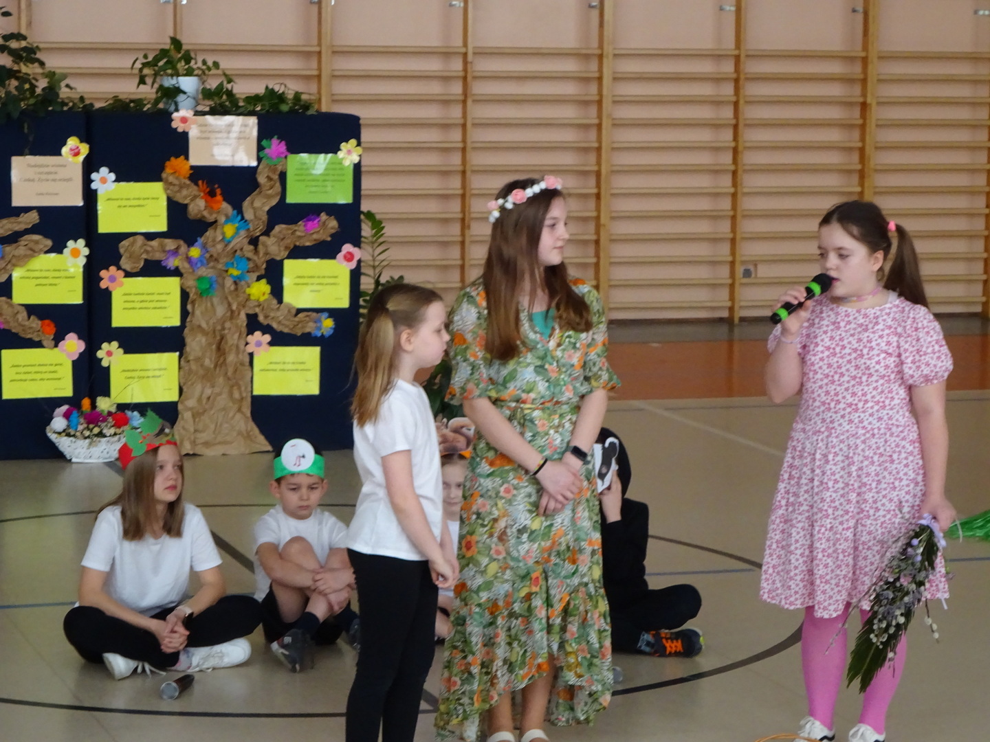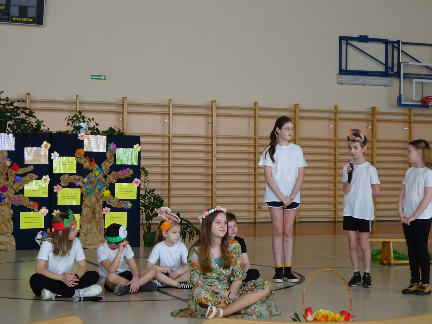 Wiosna to piękna i kolorowa pora roku. Uczniowie klas II i IV postanowili uczcić ten wyjątkowy moment i zaprezentowali inscenizację, w której w mistrzowski sposób ukazali piękno i energię wiosny. Mogliśmy podziwiać kreatywne występy artystyczne, wiersze recytowane z pasją, piękne melodie oraz barwne stroje, które doskonale odzwierciedlały atmosferę nadchodzącej pory roku. Uczniowie z wielkim zaangażowaniem i entuzjazmem prezentowali swoje umiejętności, co wzbudziło ogromne zainteresowanie i aplauz ze strony publiczności. o wiośnie. Dziękujemy serdecznie uczniom i wychowawczyniom.