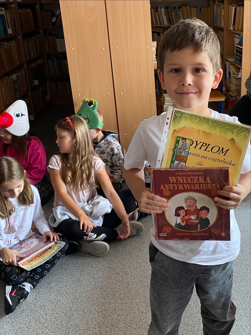 12 czerwca w naszej szkolnej bibliotece odbyło się pasowanie uczniów i uczennic klasy I na czytelnika. Dzieci najpierw przypomniały sobie czym jest biblioteka, jak postępować z książkami, jak wypożyczyć książkę, następnie wysłuchały wiersza "Rzepka" Juliana Tuwima, a na koniec w strojach postaci z wiersza z dumą otrzymały od nauczyciela pamiątkowe dyplomy i zakładki oraz wyprawki czytelnicze przekazane szkole w ramach Ogólnopolskiej Kampanii Czytelniczej "Mała Książka - Wielki Człowiek", która prowadzona jest przez Instytut Książki a finansowana przez Ministerstwo Kultury i Dziedzictwa Narodowego. Radość i zaskoczenie dzieci były nie do opisania. Ten dzień na pewno na długo pozostanie w ich pamięci jako jeden z najważniejszych momentów w szkolnej karierze.