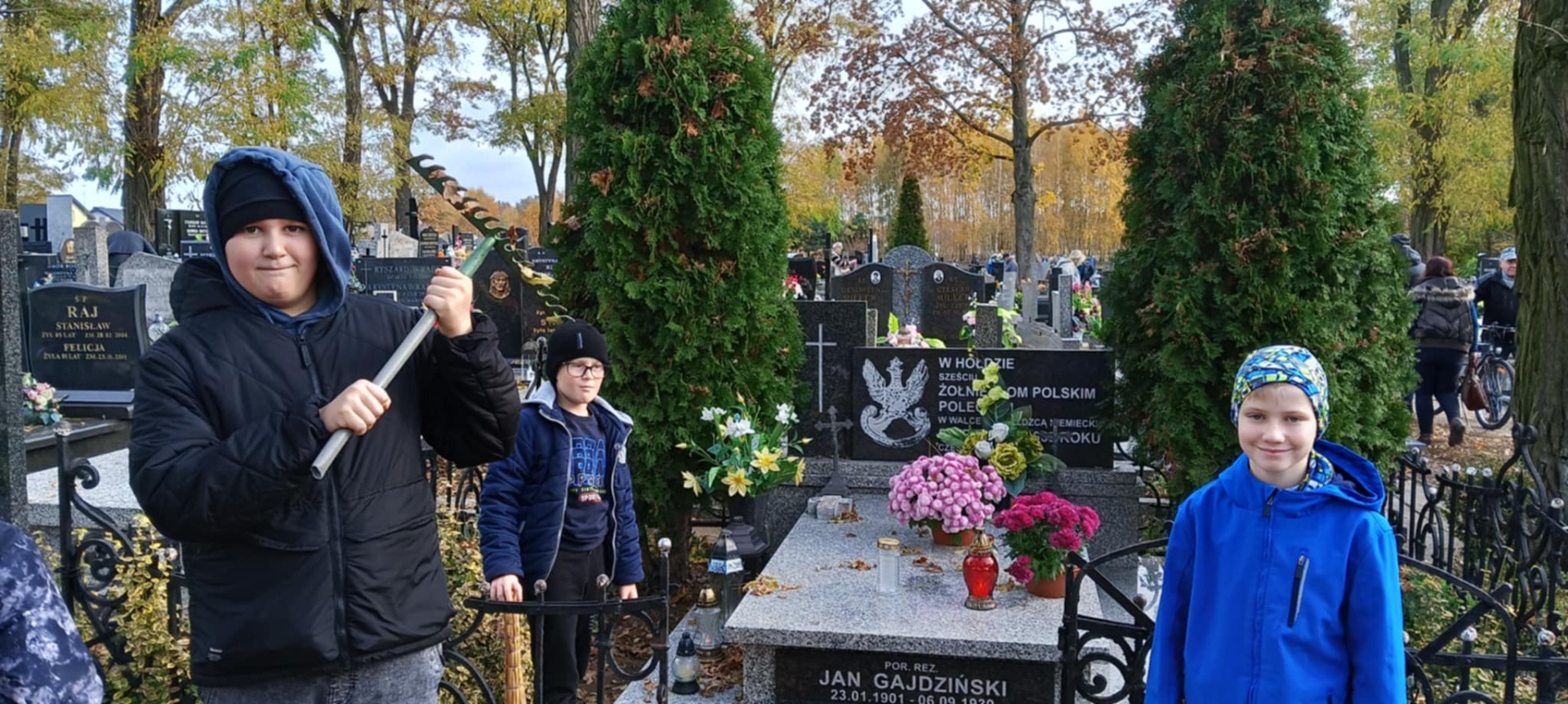 Cieszymy się, że nasza młodzież co roku chętnie uczestniczy w akcjach prowadzonych na terenie gminy i mamy nadzieję, że tradycja sprzątania cmentarza przez naszą Szkołę nigdy nie zaniknie.
