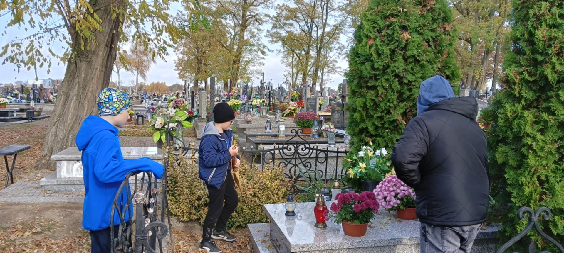 W czwartek ( 31.10.2024) uczniowie klasy 4 oraz przedstawiciele Samorządu Uczniowskiego wraz z nauczycielami Szkoły Podstawowej im. Adama Mickiewicza w Wojsławicach udali się na cmentarz, by posprzątać groby przed dniem Wszystkich Świętych i zapalić znicze na grobach zmarłych nauczycieli i pracowników szkoły. To wspaniała inicjatywa, która łączy edukację z wartościami takimi jak: szacunek, pamięć i wspólnota. Tego rodzaju inicjatywy są dla naszych uczniów bardzo ważne, wzmacniają więź z tradycją i pokazują, że pamięć o zmarłych to istotna część kultury i tożsamości.