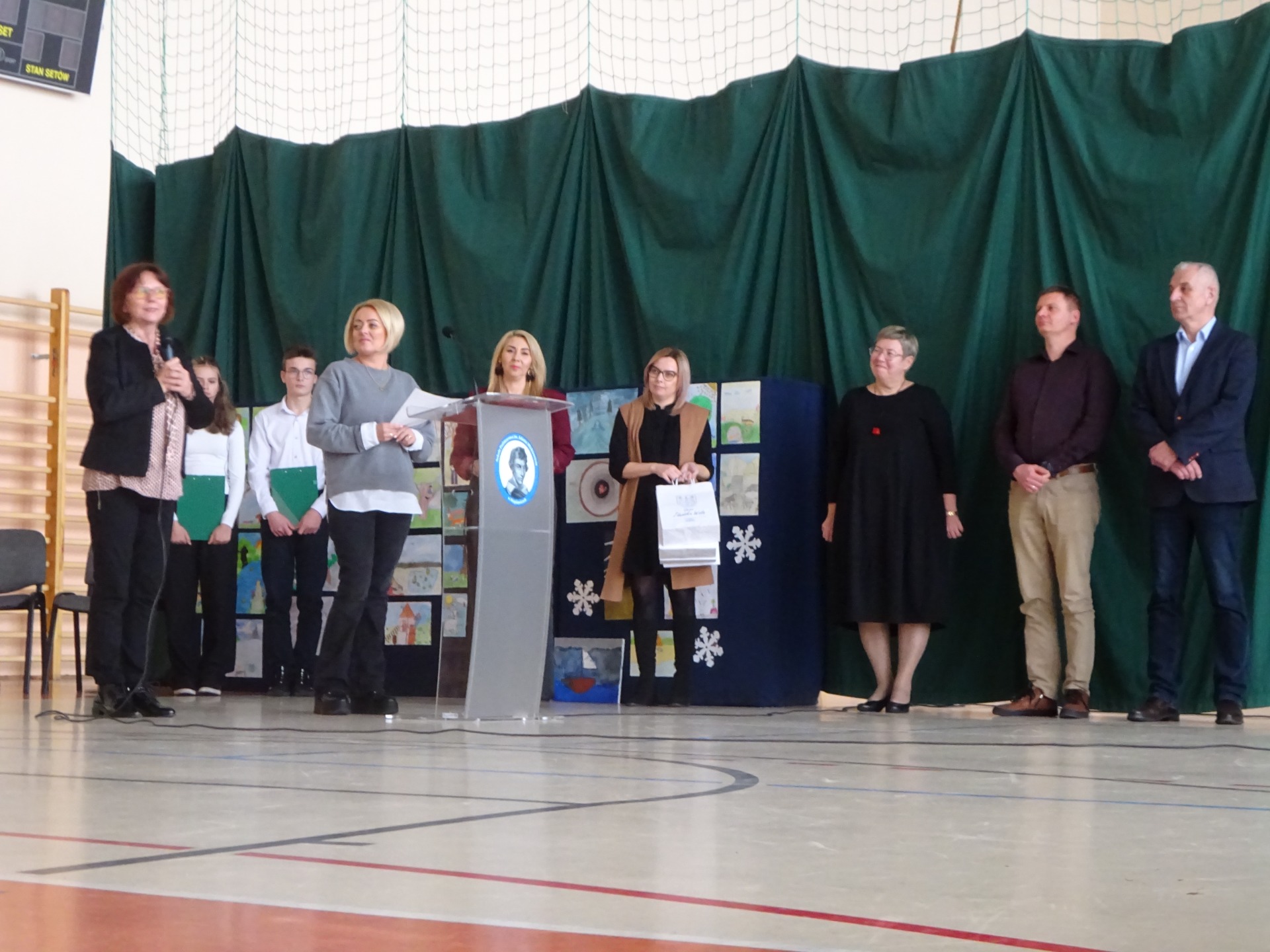 Nagrody laureatom konkursu wręczyła w imieniu pana Henryka Staniuchy – wójta Gminy Zduńska Wola pani Anna Chwiołka – Piekarz – kierownik referatu oświaty, pan Karol Jaros - przewodniczący Rady Rodziców oraz pan Marek Guć - dyrektor szkoły.