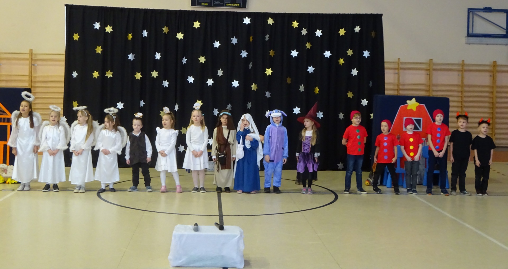 Z okazji zbliżających się Świąt Bożego Narodzenia uczniowie klasy 0 zaprezentowali wspaniałe przedstawienie pt. „Co z tymi Jasełkami?”, które przeniosło widzów w magiczny i pełen humoru świat świątecznych tradycji. Mali artyści z wielkim zaangażowaniem wcielili się w swoje role, prezentując nie tylko doskonałe umiejętności aktorskie, ale także piękne śpiewy kolęd i pastorałek, które wprowadziły wszystkich w świąteczny nastrój. Przedstawienie spotkało się z gorącym aplauzem licznie zgromadzonej publiczności – rodziców, nauczycieli oraz uczniów innych klas. Kreatywna scenografia, barwne kostiumy oraz radosna atmosfera sprawiły, że występ na długo pozostanie w naszej pamięci. Po zakończeniu przedstawienia mieliśmy przyjemność wysłuchać utalentowanych uczniów naszej szkoły. Podczas występu zaprezentowano grę na oboju, która oczarowała zgromadzonych swoim pięknym, nastrojowym brzmieniem. Następnie mogliśmy podziwiać wspaniały występ wokalny, który poruszył serca wszystkich obecnych. Całe wydarzenie spotkało się z gorącym aplauzem i uznaniem publiczności. Gratulujemy wszystkim wykonawcom oraz ich opiekunom za przygotowanie tak wspaniałego występu, który wprowadził nas w atmosferę świąt Bożego Narodzenia!