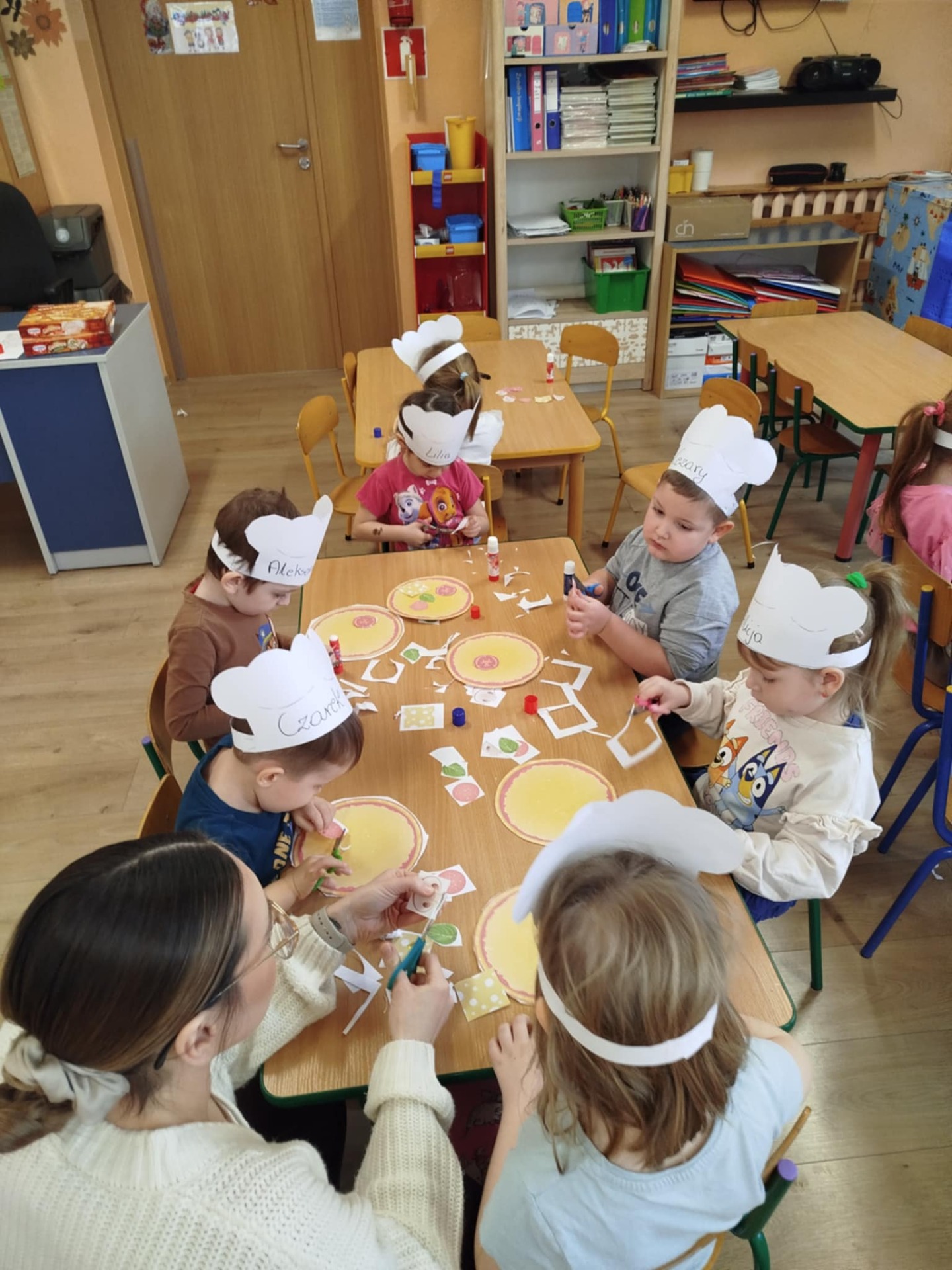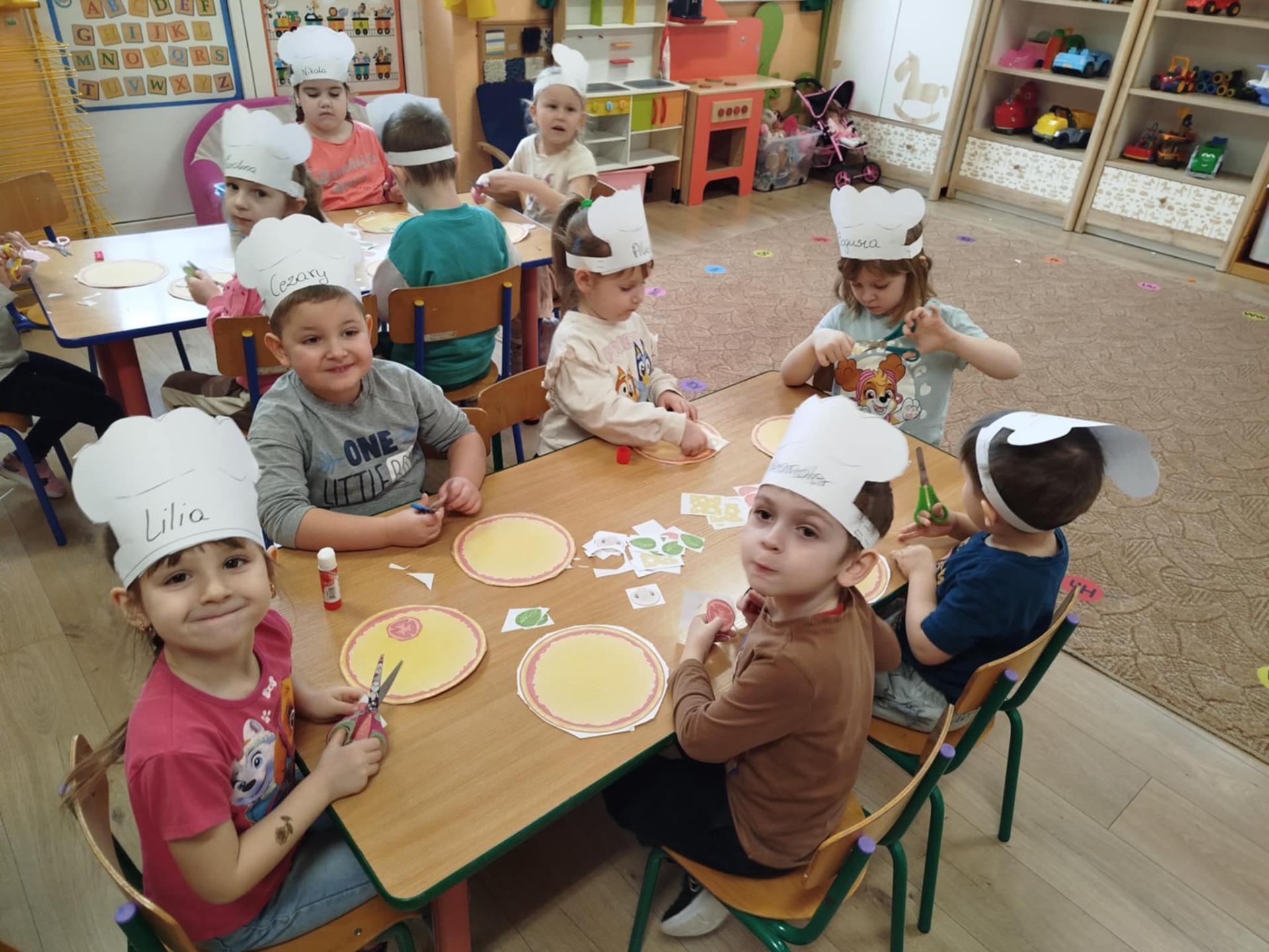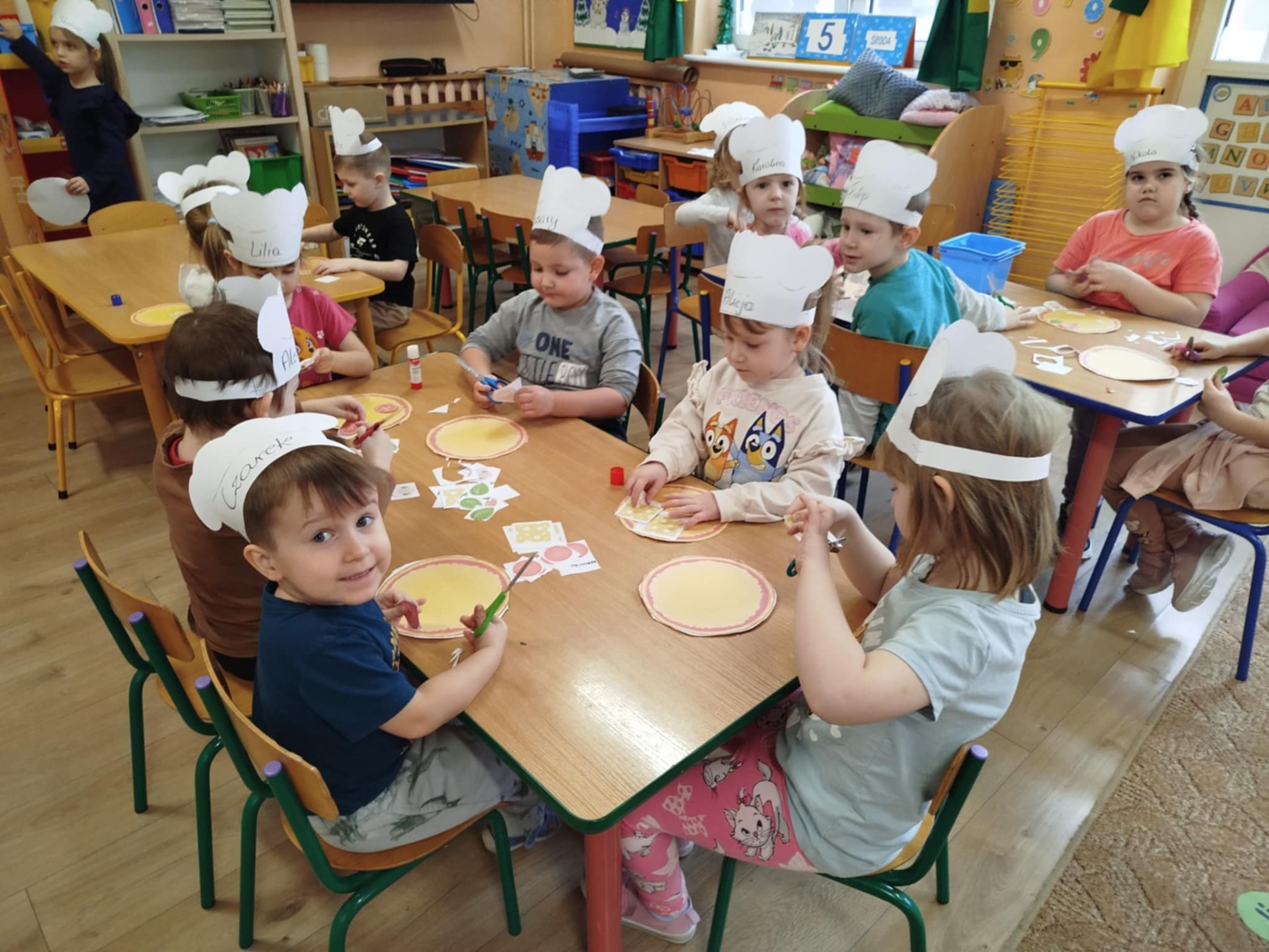 Pizza jest jedną z najpopularniejszych potraw na świecie. Uwielbiają ją zarówno dzieci, jak i dorośli, dlatego w naszym przedszkolu obchodziliśmy Międzynarodowy Dzień Pizzy 🍕. Tego dnia nasza sala zamieniła się w prawdziwą włoską pizzerię. Podczas zajęć dzieci poznały krótką historię pizzy, dowiedziały się z jakiego kraju pochodzi oraz poznały składniki, które są niezbędne do jej przygotowania. Przedszkolaki stworzyły kolorowe, smakowicie wyglądające placki, wykorzystując do tego różne techniki plastyczne. Najbardziej wyczekiwanym punktem tego dnia była degustacja pizzy 🍕