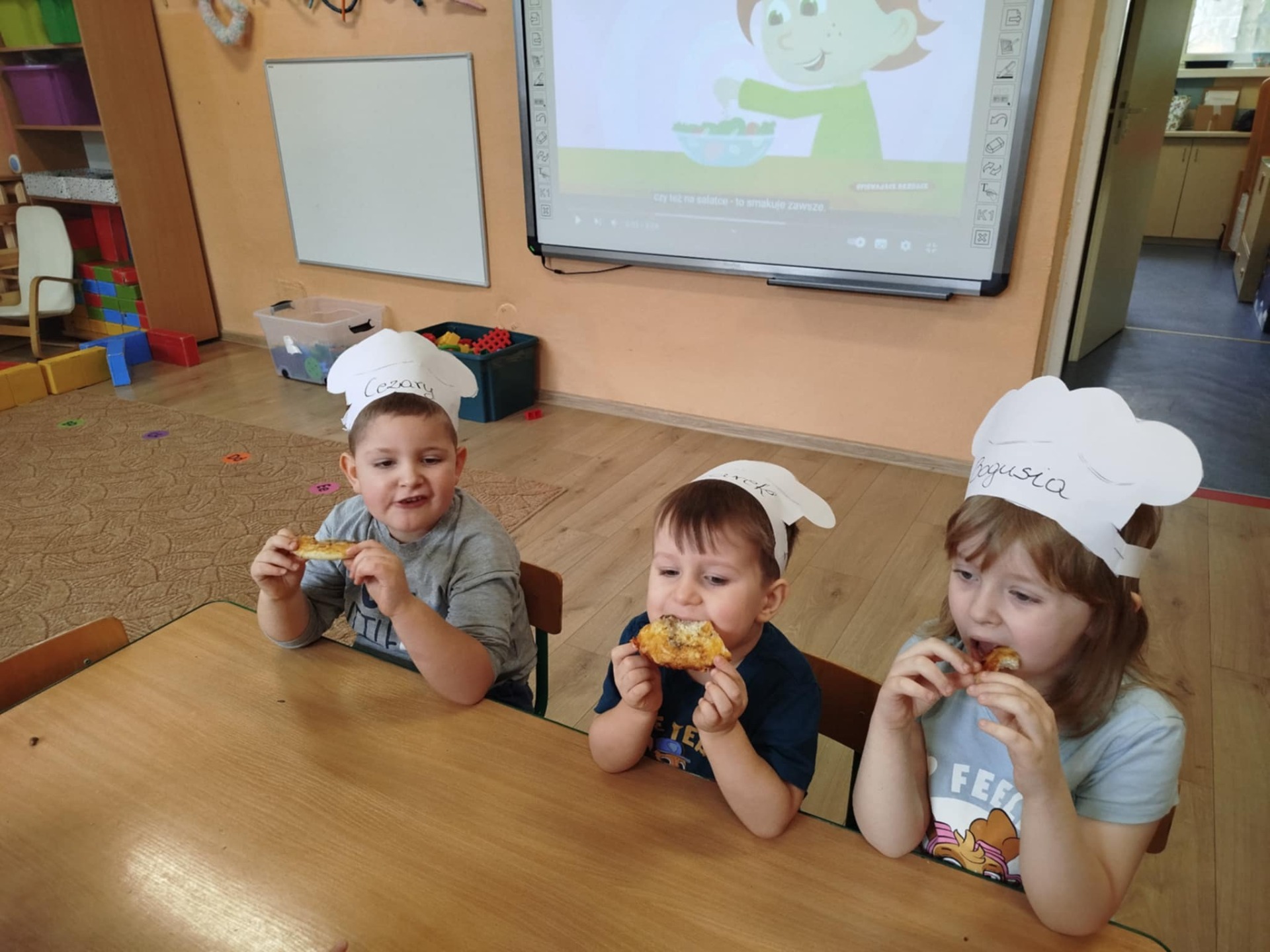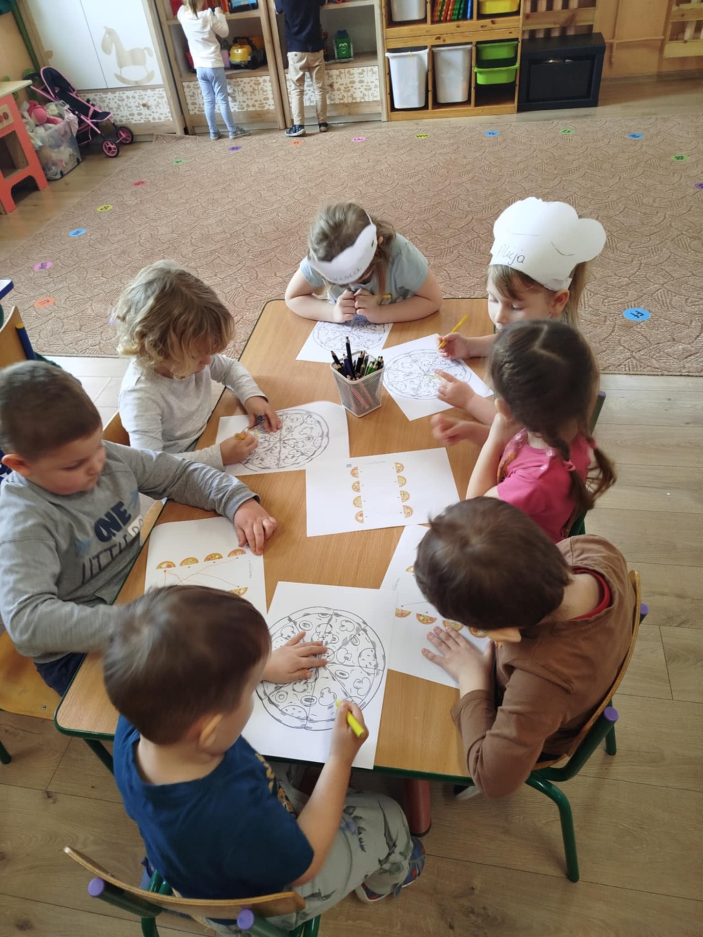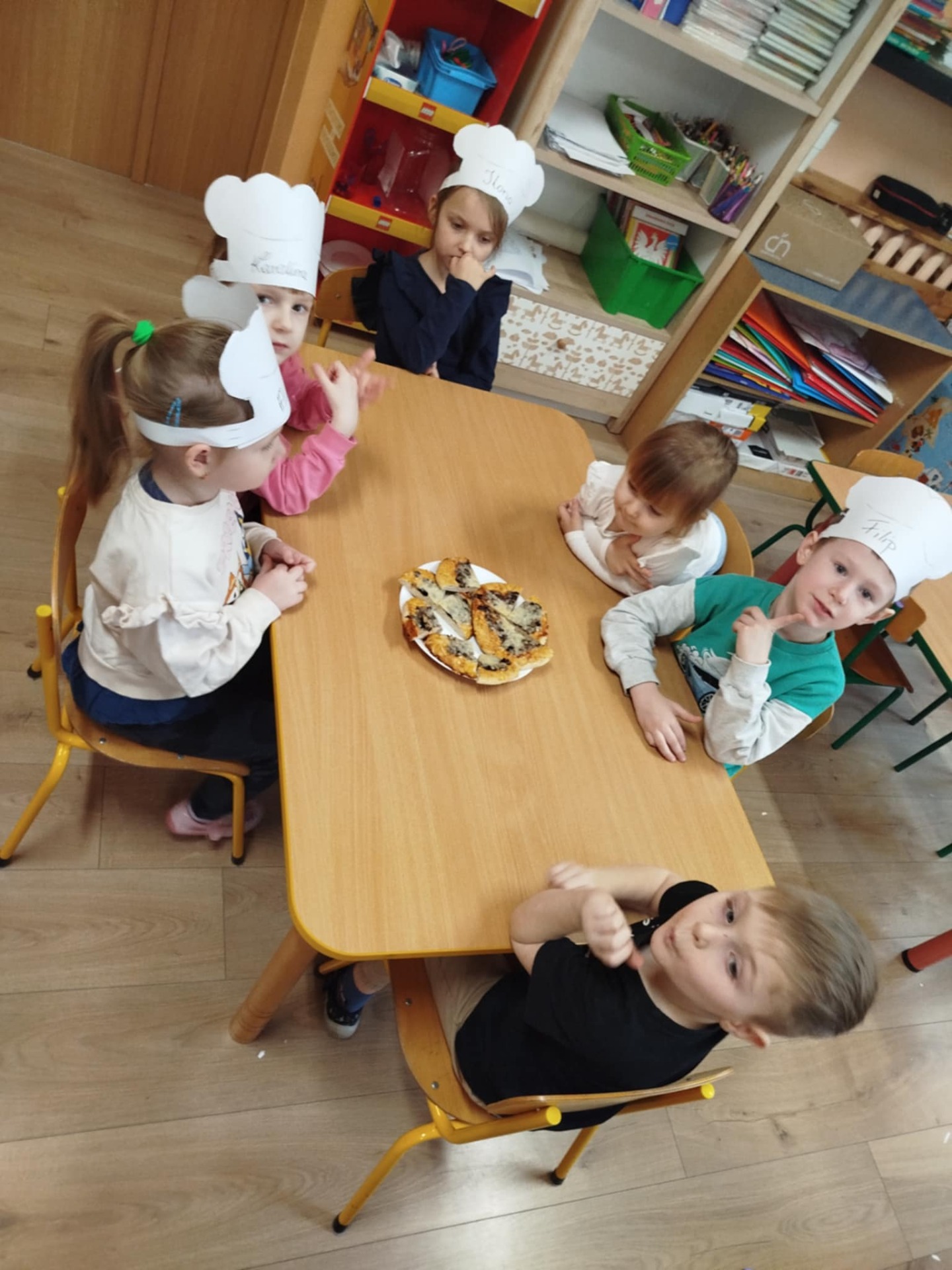Pizza jest jedną z najpopularniejszych potraw na świecie. Uwielbiają ją zarówno dzieci, jak i dorośli, dlatego w naszym przedszkolu obchodziliśmy Międzynarodowy Dzień Pizzy 🍕. Tego dnia nasza sala zamieniła się w prawdziwą włoską pizzerię. Podczas zajęć dzieci poznały krótką historię pizzy, dowiedziały się z jakiego kraju pochodzi oraz poznały składniki, które są niezbędne do jej przygotowania. Przedszkolaki stworzyły kolorowe, smakowicie wyglądające placki, wykorzystując do tego różne techniki plastyczne. Najbardziej wyczekiwanym punktem tego dnia była degustacja pizzy 🍕