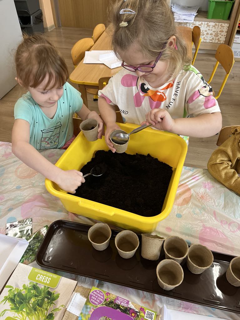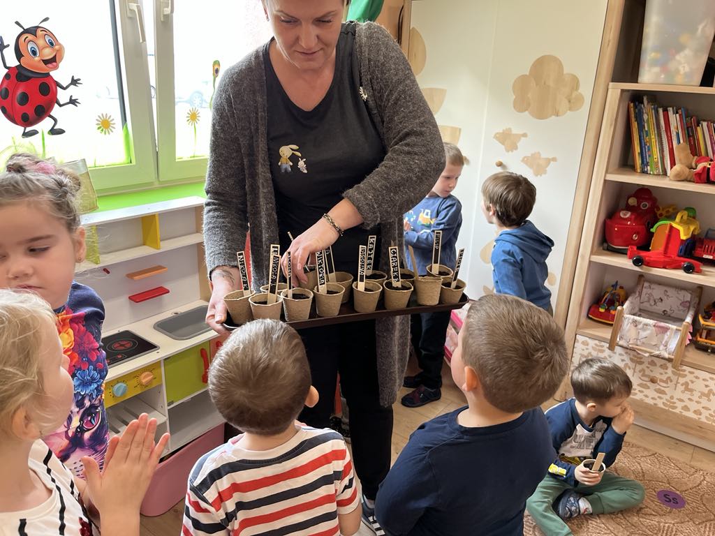 Dzieci z naszego przedszkola z radością przygotowują się na nadejście wiosny! W ramach zajęć stworzyły kącik przyrodniczy, w którym zasadziły pierwsze wiosenne rośliny – rzeżuchę, owies oraz cebulki kwiatów. Przedszkolaki z zaangażowaniem podlewają swoje roślinki i codziennie obserwują ich wzrost. W kąciku pojawiły się także gałązki forsycji oraz ilustracje zwiastunów wiosny. To wspaniała okazja do nauki i rozwijania wrażliwości na piękno przyrody! 🌱🌼🌿