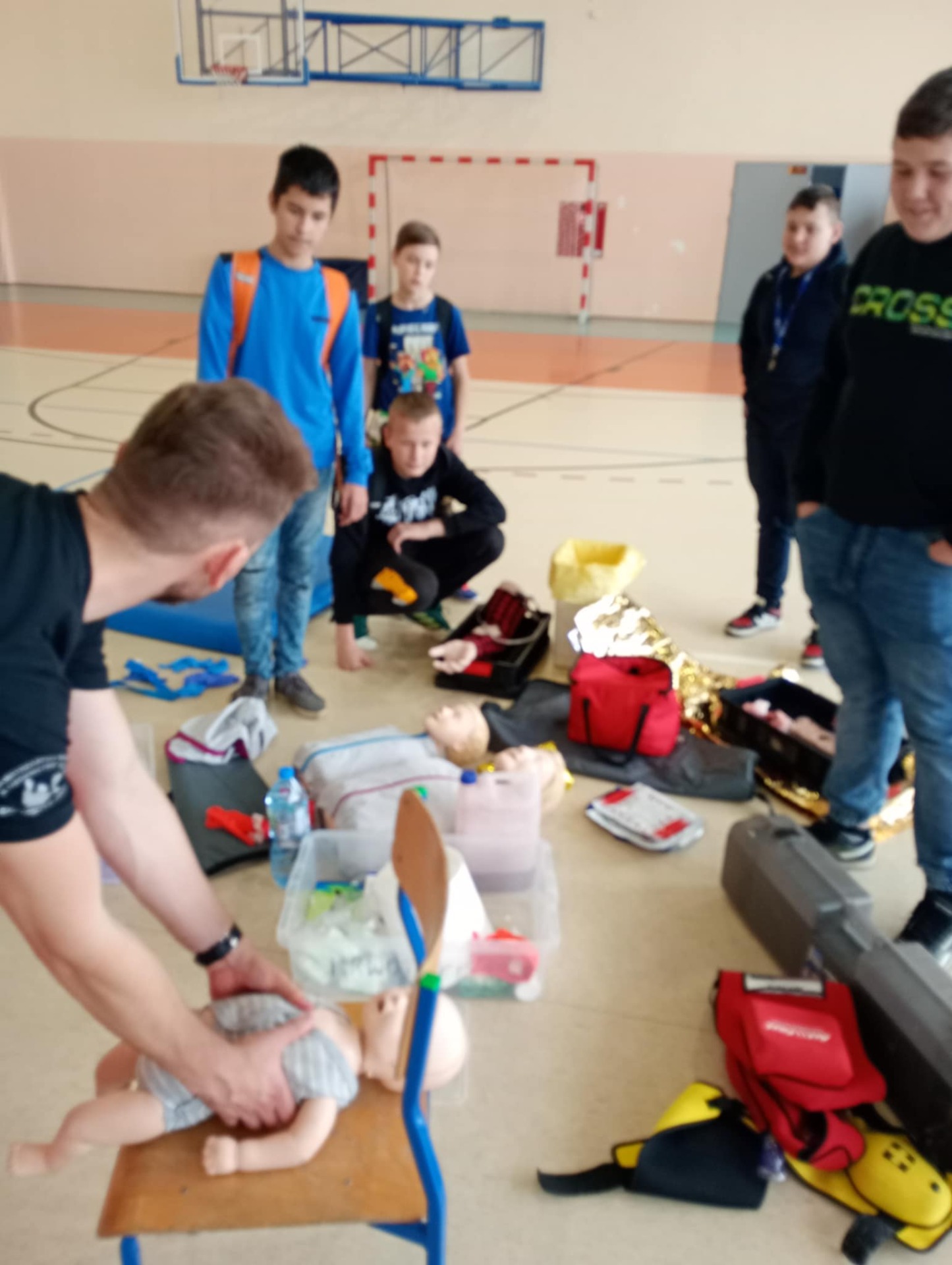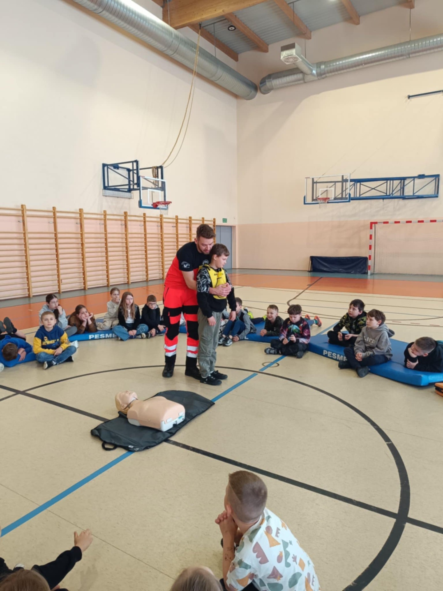 Podczas zorganizowanego spotkania, dzieci mogły poczuć się jak mali ratownicy. Poznały procedury zachowania się w sytuacjach zagrożenia życia oraz obserwowały czynności ratownicze. Wiele emocji wzbudziły pomoce dydaktyczne, które wyglądały bardzo autentycznie np. krwawiąca ręka czy też skóra z raną głęboką. Dzieci pod czujnym okiem prowadzącego mogły samodzielnie wykazać się praktyczną znajomością udzielania pierwszej pomocy podczas zatrzymania krążenia, zakrztuszenia, czy też krwotoku. Zostały zapoznane ze sprzętem ratującym życie i utrwaliły znajomość numerów alarmowych.