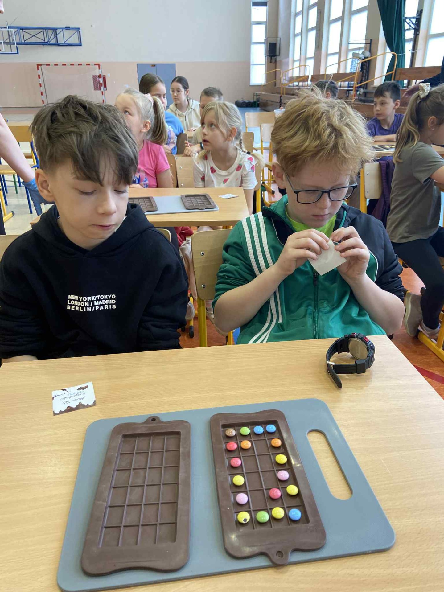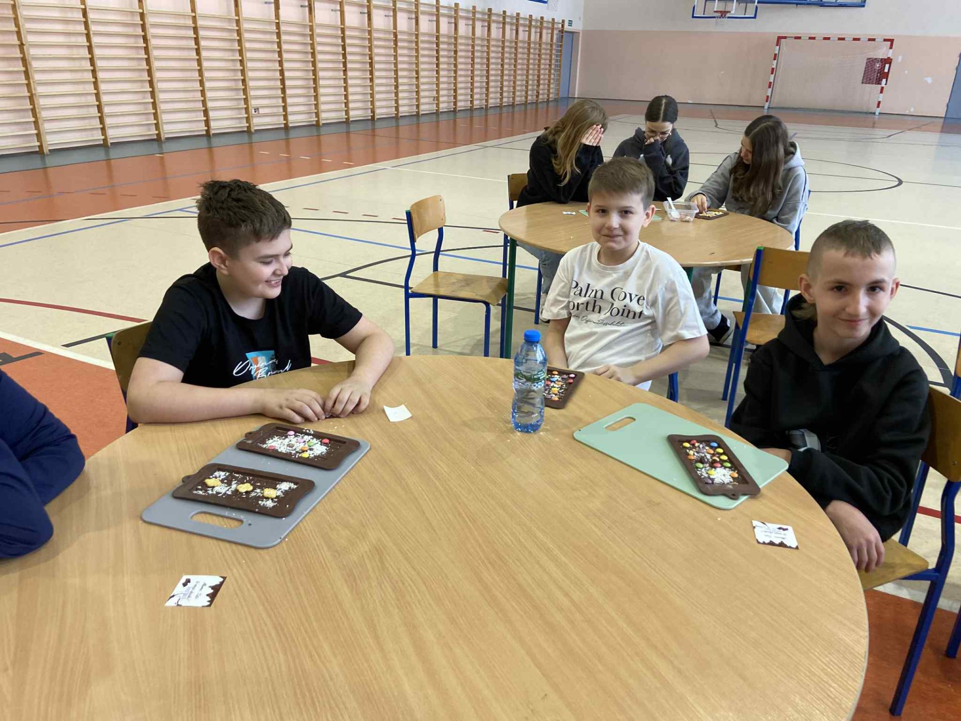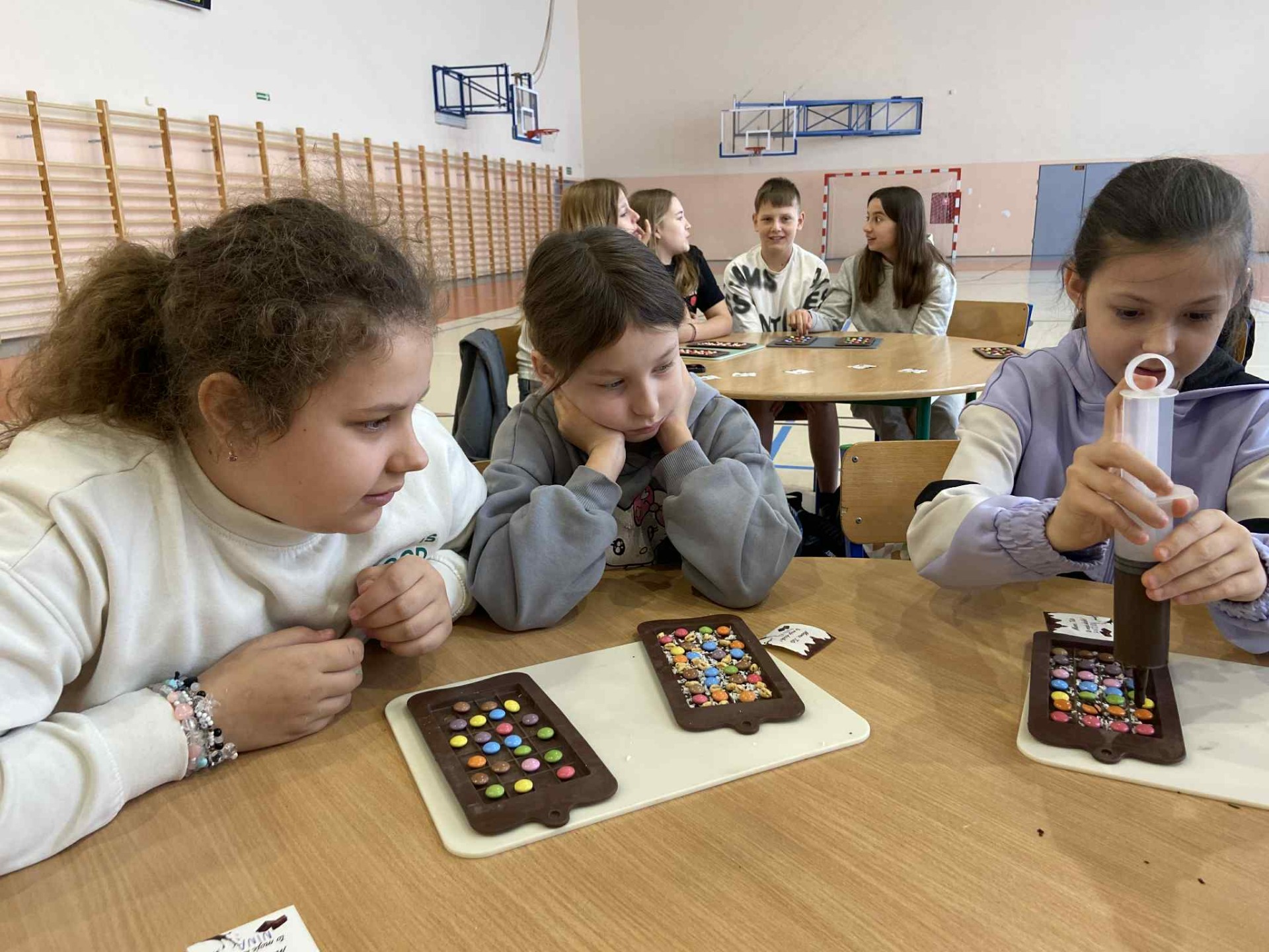 Warsztaty były nie tylko pyszną, ale też edukacyjną przygodą – uczniowie rozwijali kreatywność i zdobywali nowe wiadomości w praktyczny sposób. Każde dziecko zabrało do domu własnoręcznie wykonaną czekoladę i certyfikat uczestnictwa w warsztatach.