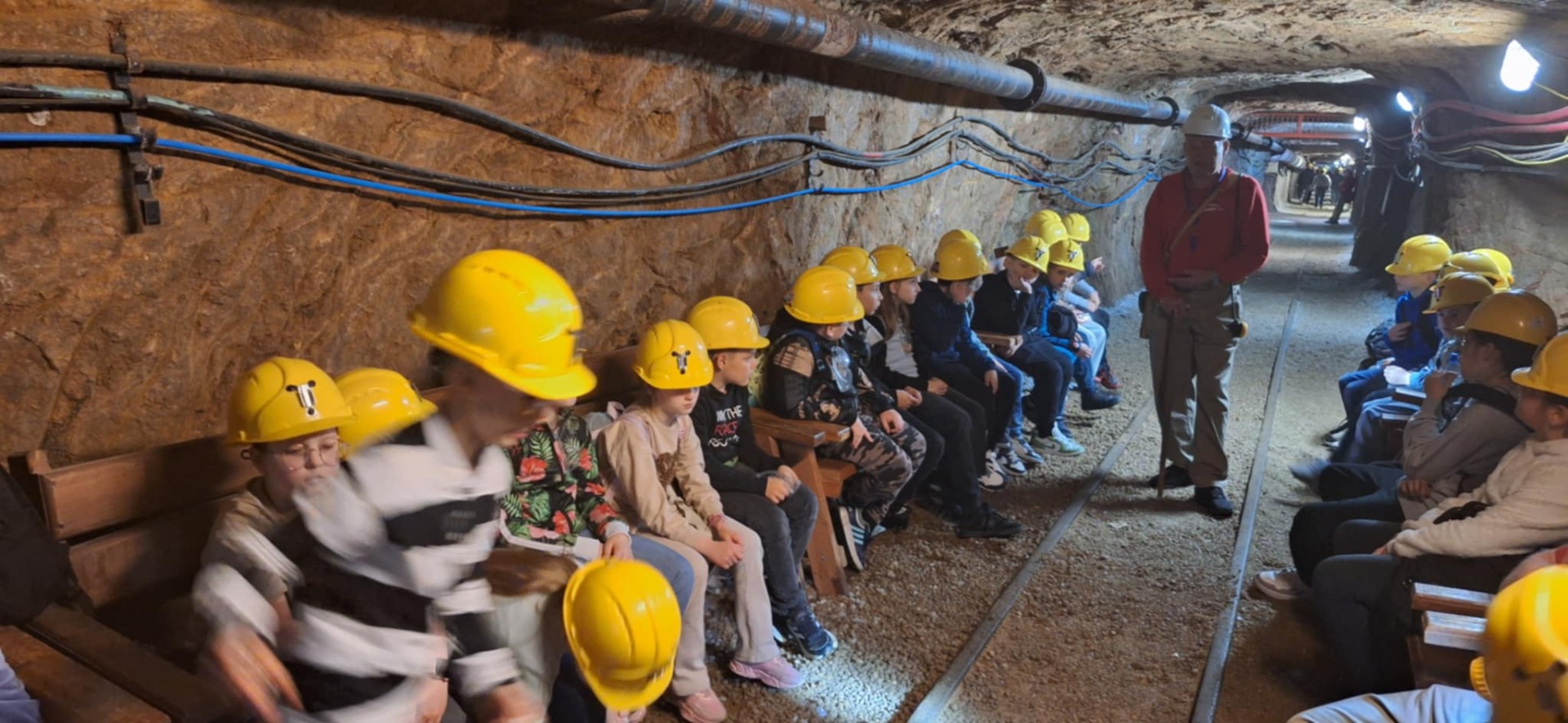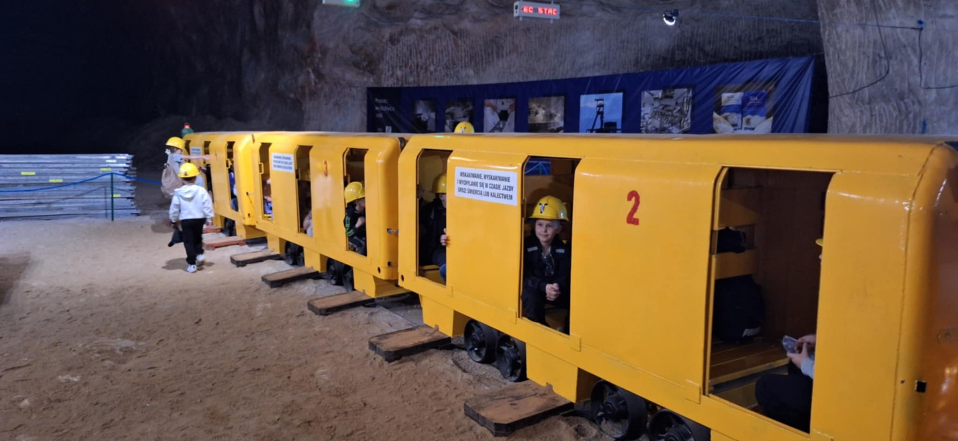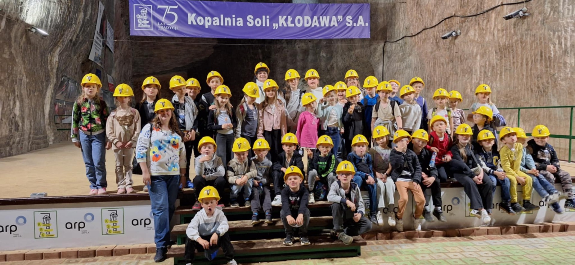 Drugą częścią wycieczki była wizyta w Kopalni Soli w Kłodawie – jednej z najgłębszych kopalni soli w Europie. Uczniowie zjechali windą na głębokość 600 metrów pod ziemię, gdzie pod opieką przewodnika zwiedzali chodniki solne, komory i poznawali historię wydobycia soli. Ogromne wrażenie zrobiły kolorowe ściany solne oraz solne rzeźby i kaplice. Dzieci dowiedziały się, jak powstaje sól, jak się ją wydobywa i do czego służy na co dzień.