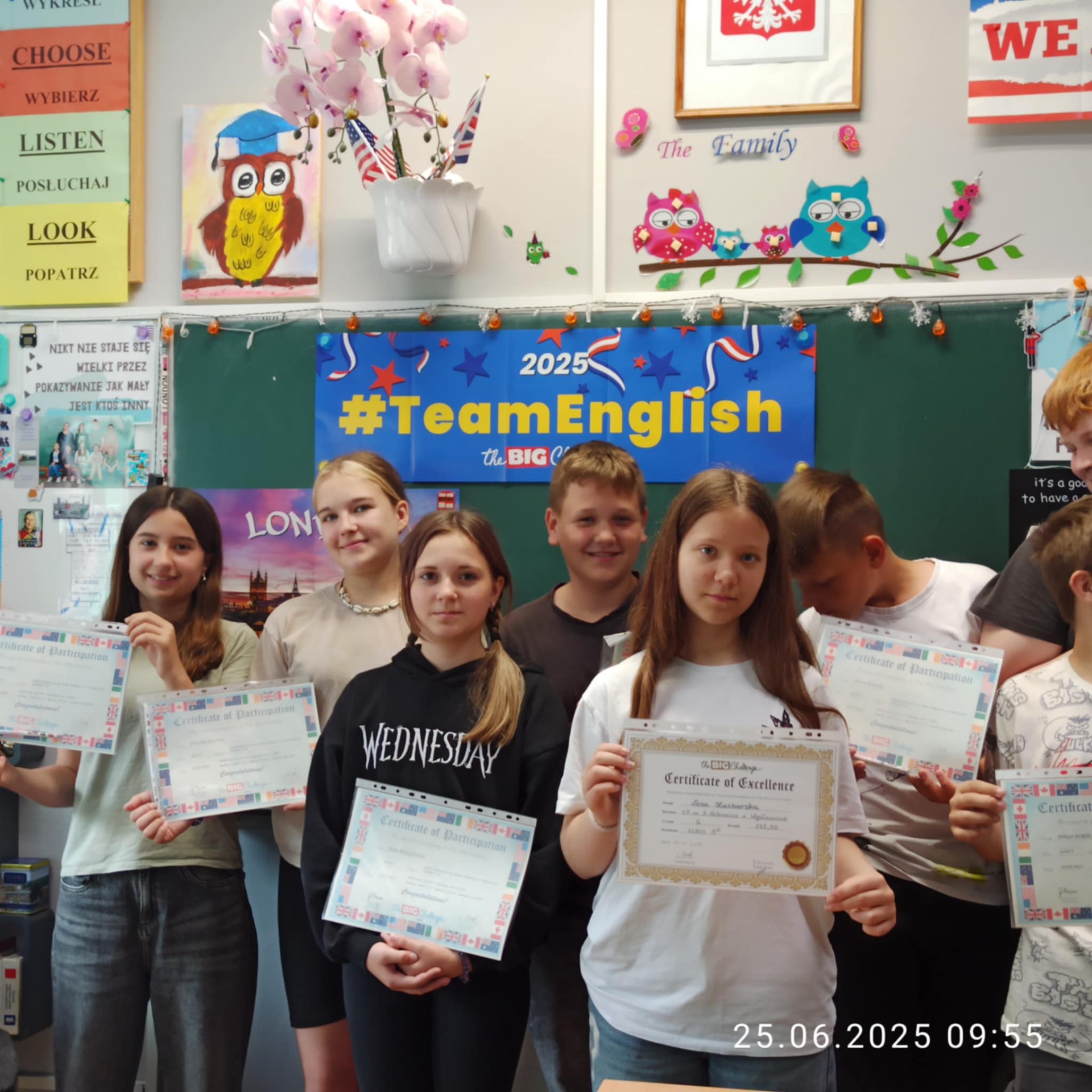 Gratulacje dla wszystkich uczestników! 🥳 oraz nauczycieli języka angielskiego Pani Joanny Klimczak i Pani Pauliny Fiks