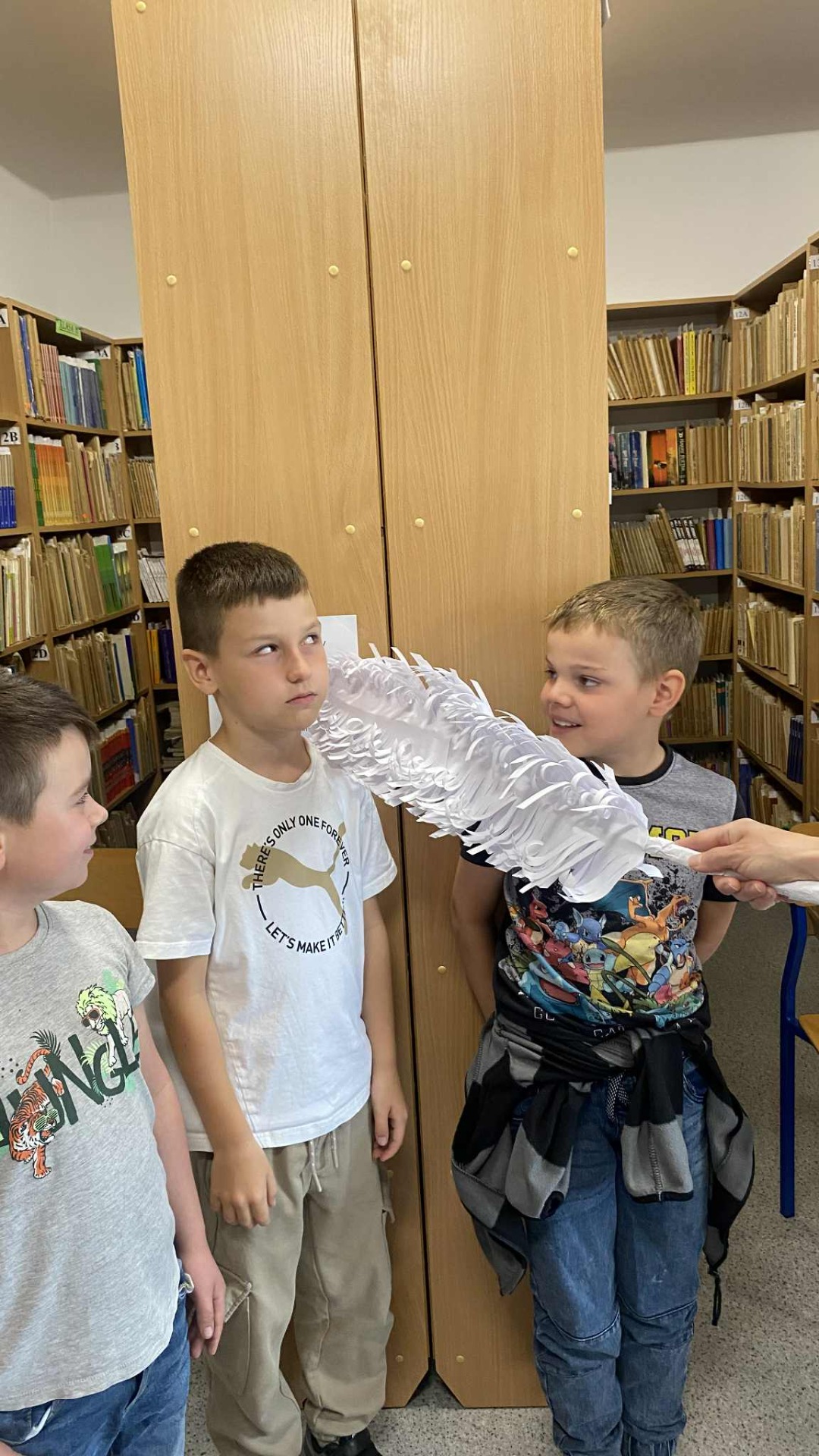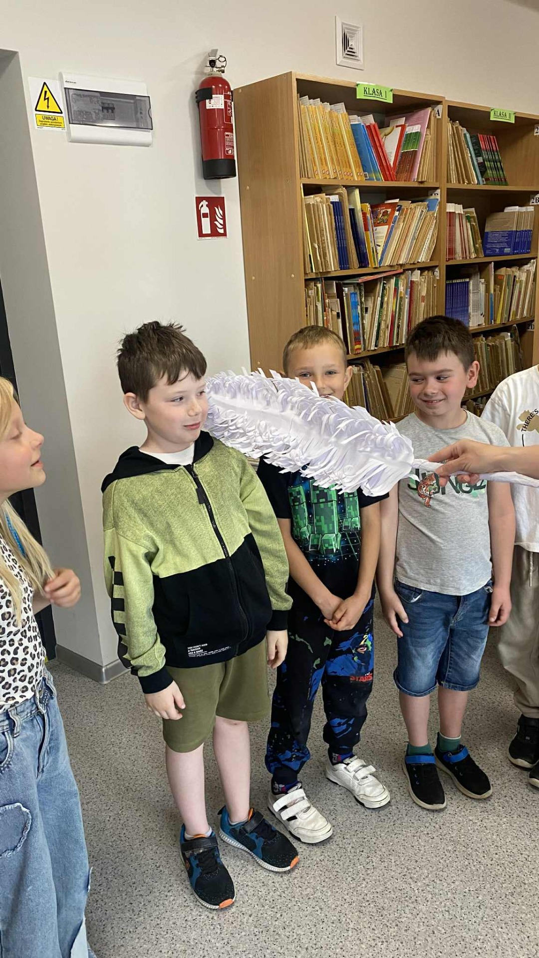 Pasowanie na czytelnika w bibliotece szkolnej. To był wyjątkowy dzień dla naszych najmłodszych uczniów! W bibliotece szkolnej odbyła się uroczystość pasowania na czytelnika. Dzieci poznały tajniki pracy bibliotekarza i dowiedziały się, jak korzystać z biblioteki. Wspólnie rozmawialiśmy o postaciach z bajek, które dzieci znają i kochają. Najbardziej wyczekiwanym momentem było pasowanie – każdy uczeń został przyjęty do grona czytelników. Nie zabrakło dyplomów, nagród – książek! Mamy nadzieję, że to wydarzenie będzie pięknym początkiem ich czytelniczej przygody!