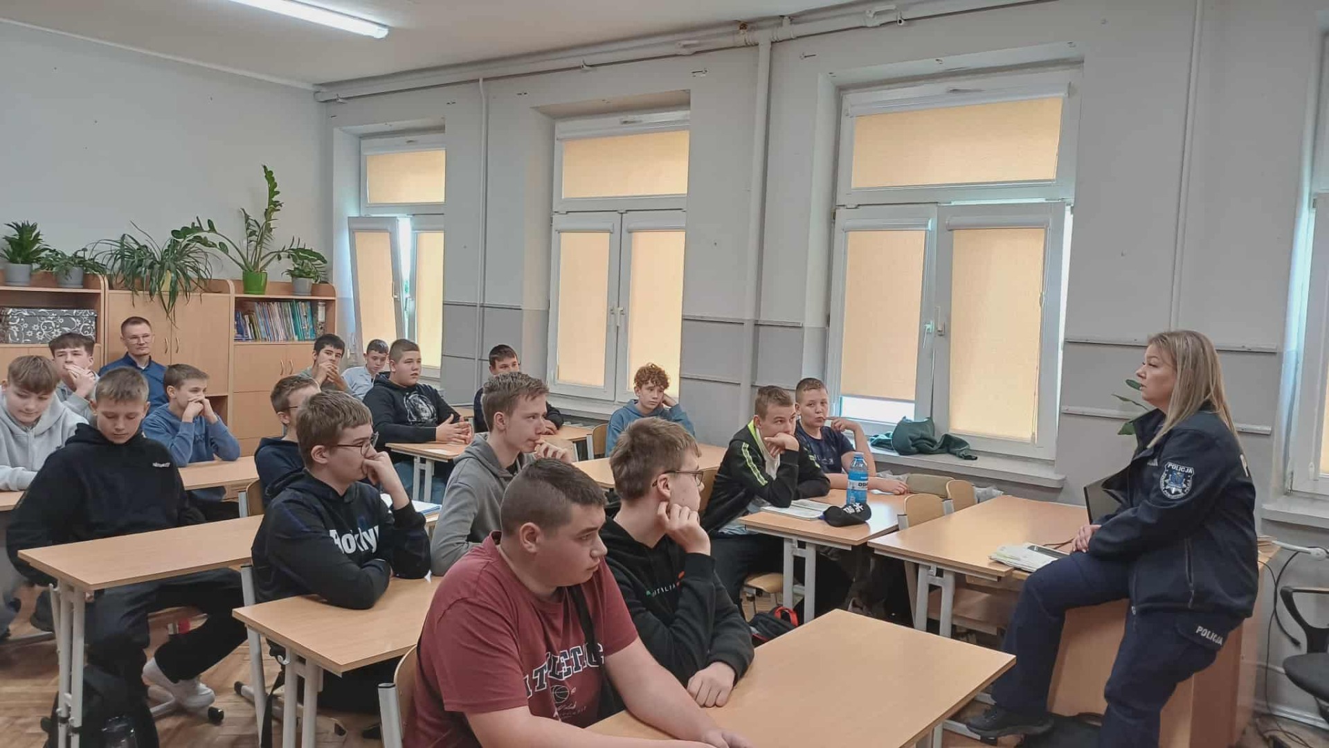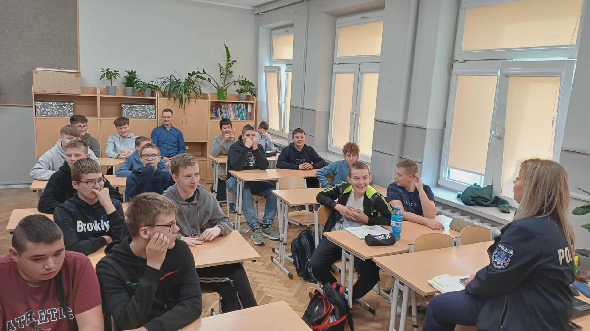 Spotkanie miało charakter edukacyjny i profilaktyczny, a uczniowie aktywnie uczestniczyli w rozmowie, zadając pytania i dzieląc się swoimi doświadczeniami.