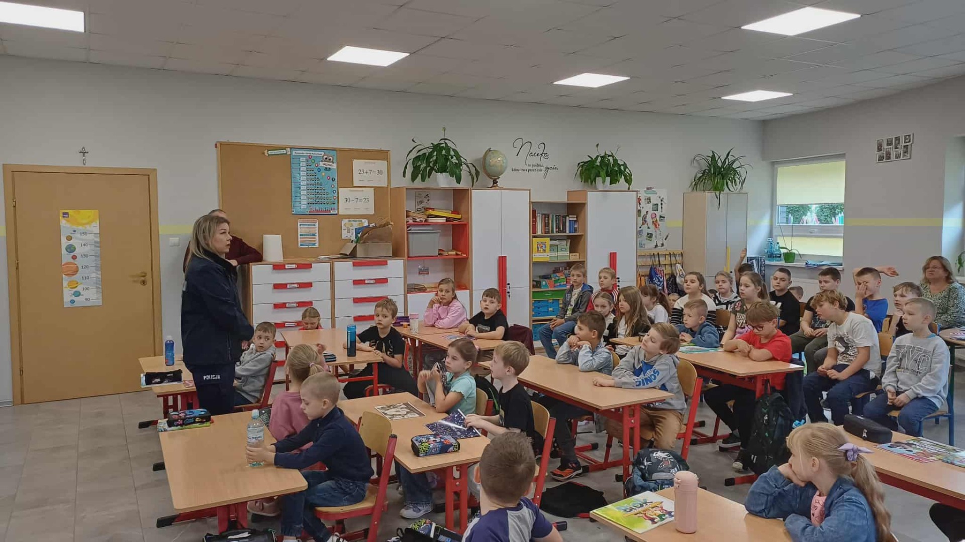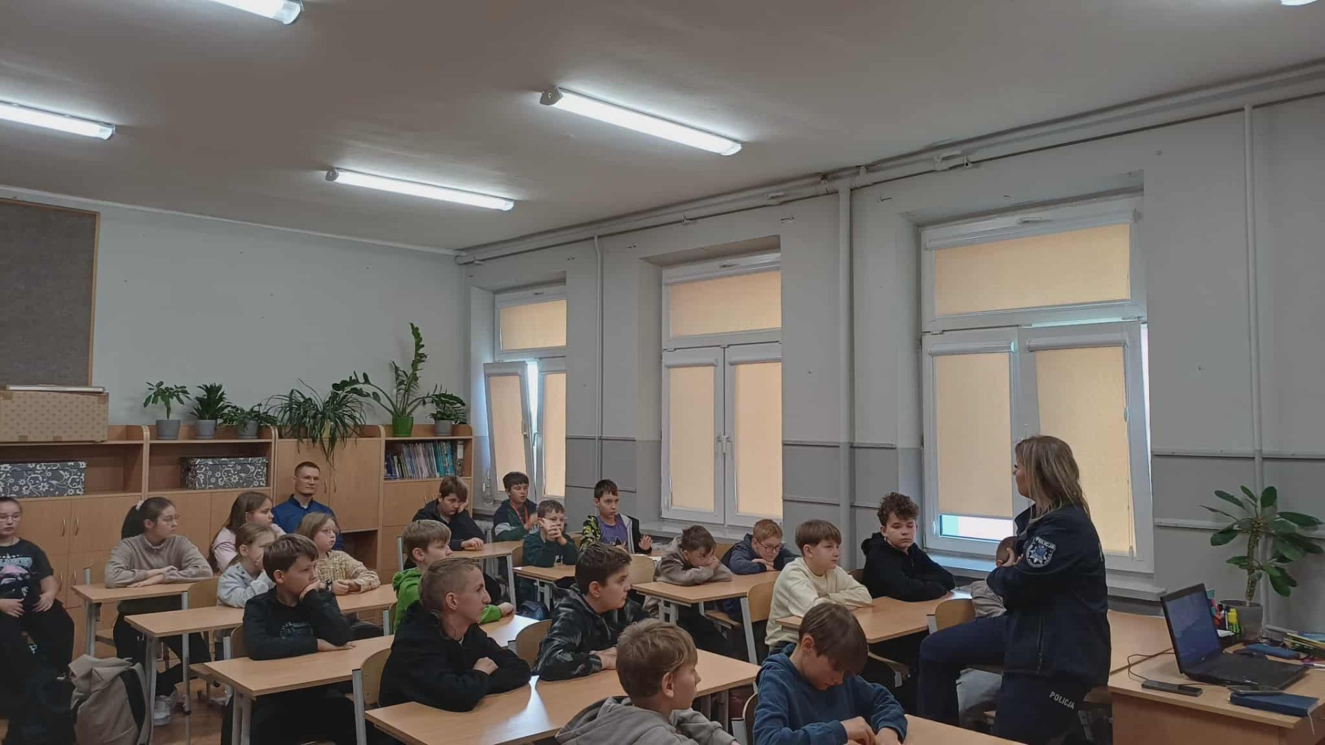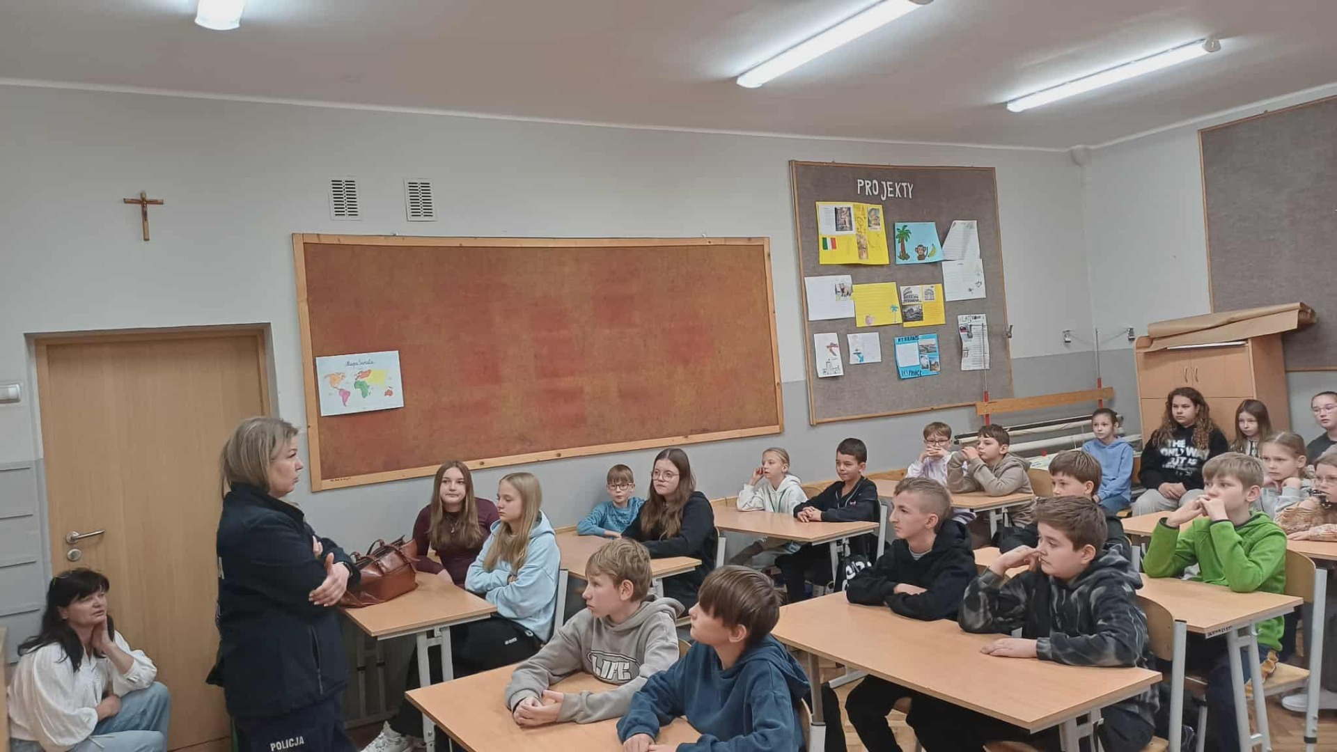 Dziś w naszej szkole odbyło się spotkanie profilaktyczne z funkcjoariuszką KPP w Zduńskiej Woli aspirant Pauliną Matysiak, skierowane do uczniów klas I–VIII. Podczas zajęć poruszono tematy związane z bezpieczną drogą do szkoły, zasadami poruszania się po drogach oraz odpowiedzialnym zachowaniem w ruchu drogowym. Policjanci zwrócili również uwagę na relacje rówieśnicze, znaczenie wzajemnego szacunku i unikania zachowań agresywnych. Starszym uczniom przypomniano zasady dotyczące odpowiedzialności karnej nieletnich, podkreślając konsekwencje niewłaściwych działań.