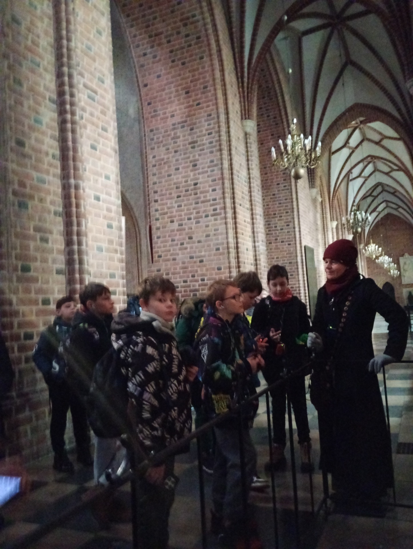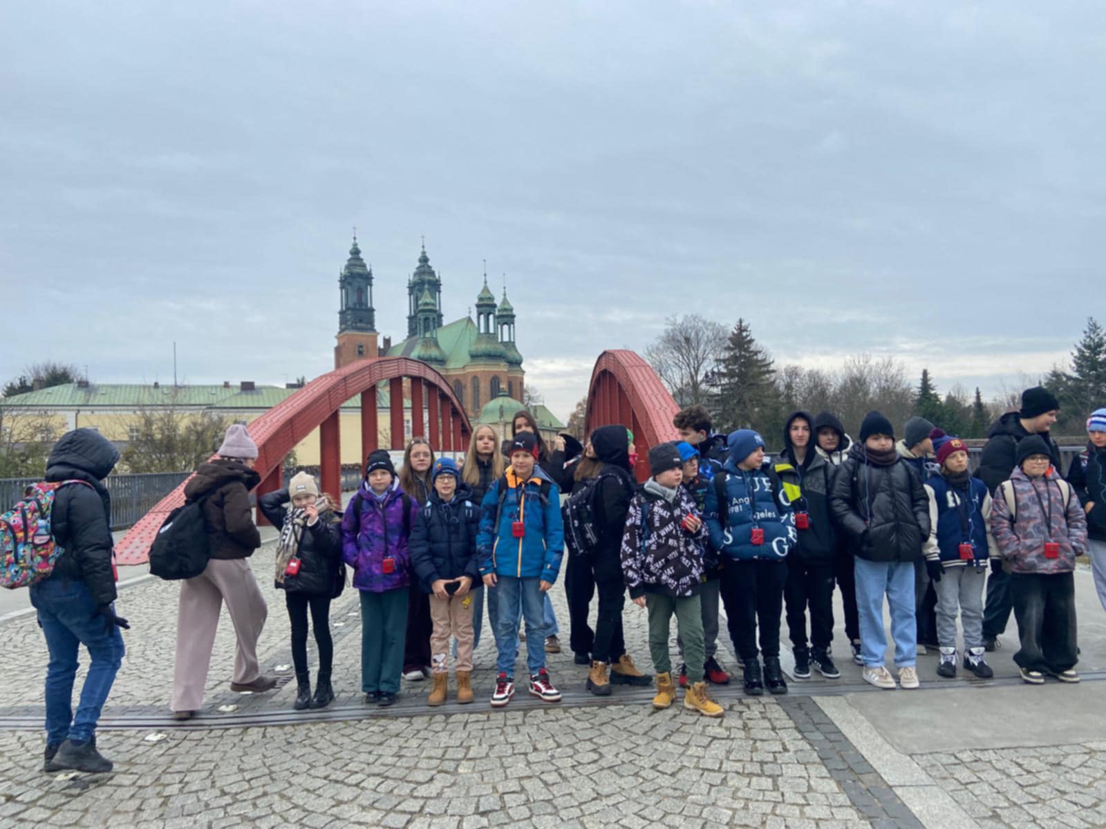 Po dotarciu na miejsce uczniowie skorzystali z komunikacji miejskiej, co pozwoliło im od razu poczuć klimat miasta. Pierwszym punktem programu była Katedra na Ostrowie Tumskim – ważne miejsce dla historii państwa polskiego, pełne zabytków i świadectw przeszłości. Uczniowie wysłuchali opowieści o początkach państwowości oraz o postaciach Mieszka I i Bolesława Chrobrego, których szczątki spoczywają w podziemiach świątyni.