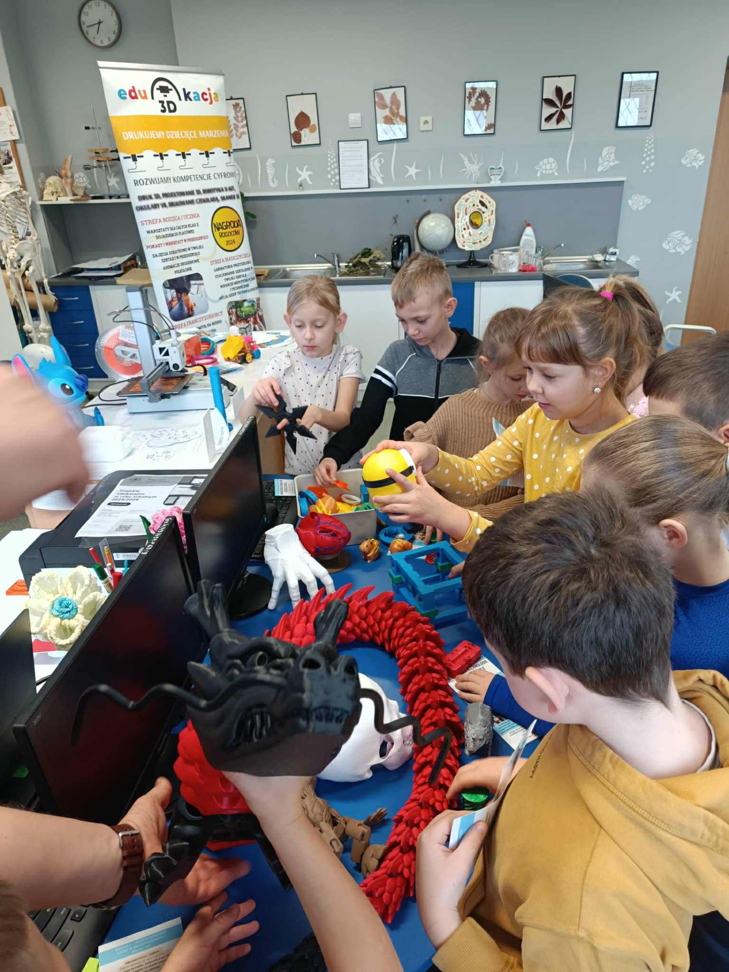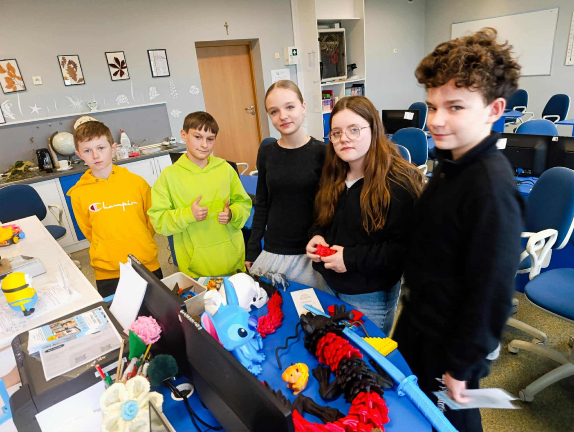 W piątek, 21 listopada, w naszej szkole odbył się wyjątkowy Dzień Technologiczny, zorganizowany w ramach programu „Laboratoria Przyszłości”. Wydarzenie miało miejsce w sali informatycznej i było skierowane do uczniów klas 0–6. Podczas spotkania zaprezentowano pokaz najnowszych technologii, który wzbudził ogromne zainteresowanie uczestników. Każda klasa miała przewidziany 20-minutowy blok warsztatowy, w trakcie którego uczniowie mogli zobaczyć oraz poznać działanie różnorodnych urządzeń i rozwiązań technologicznych. W ramach Dnia Technologicznego uczniowie mieli okazję zapoznać się m.in. z: drukiem 3D, okularami VR, robotyką X-KIT, długopisami 3D, skanowaniem 3D. Wydarzenie było świetną okazją do rozwijania zainteresowań technicznych️, kreatywności oraz umiejętności praktycznych naszych uczniów. Serdecznie dziękujemy wszystkim zaangażowanym w organizację oraz uczestnikom za aktywny udział!